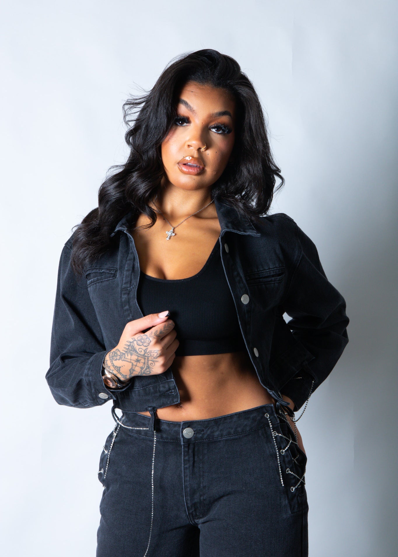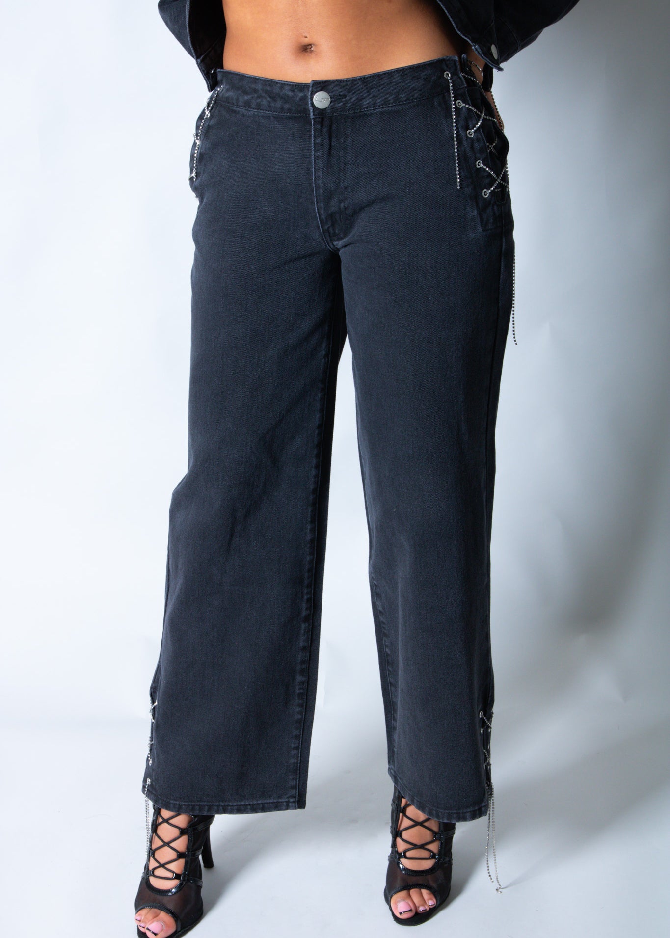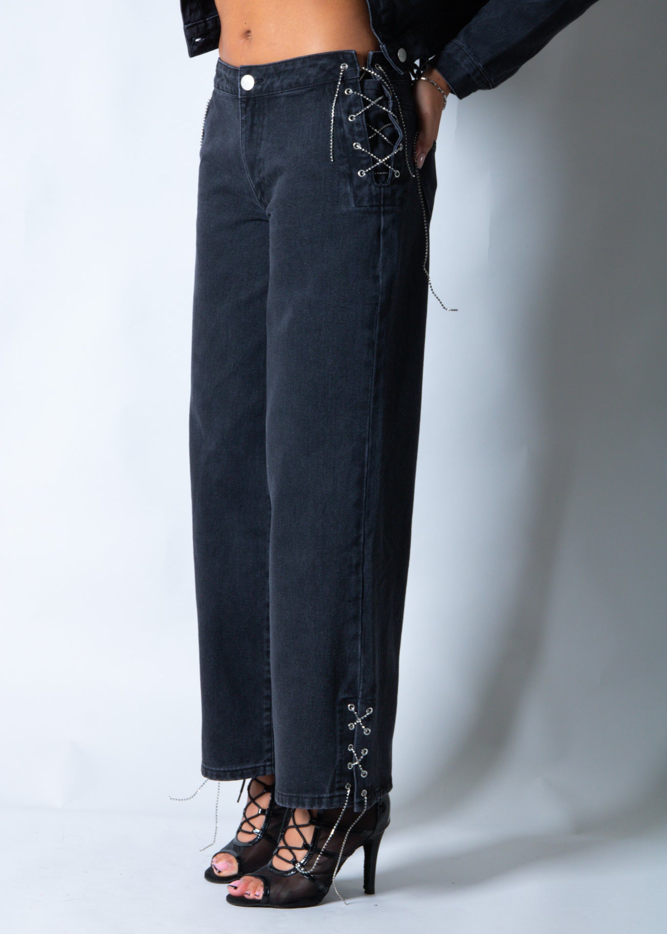 LNP WASHED DENIM LACE-UP MINI SKIRT
