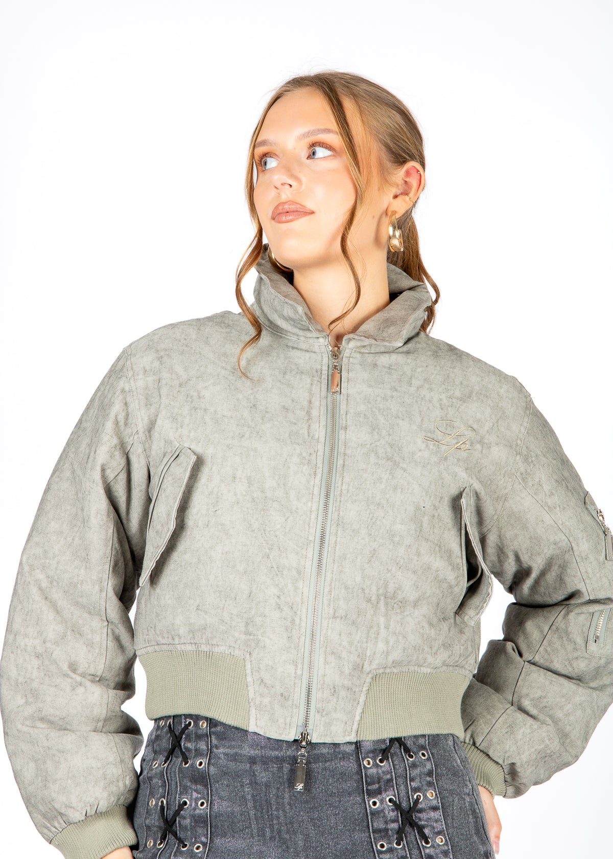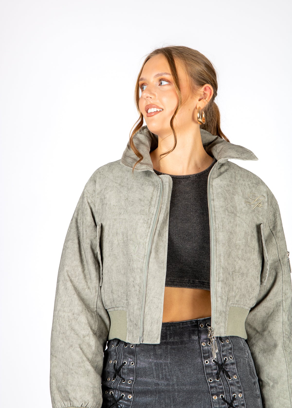 Liquor N Poker Washed Khaki Oversized Biker Denim Jacket