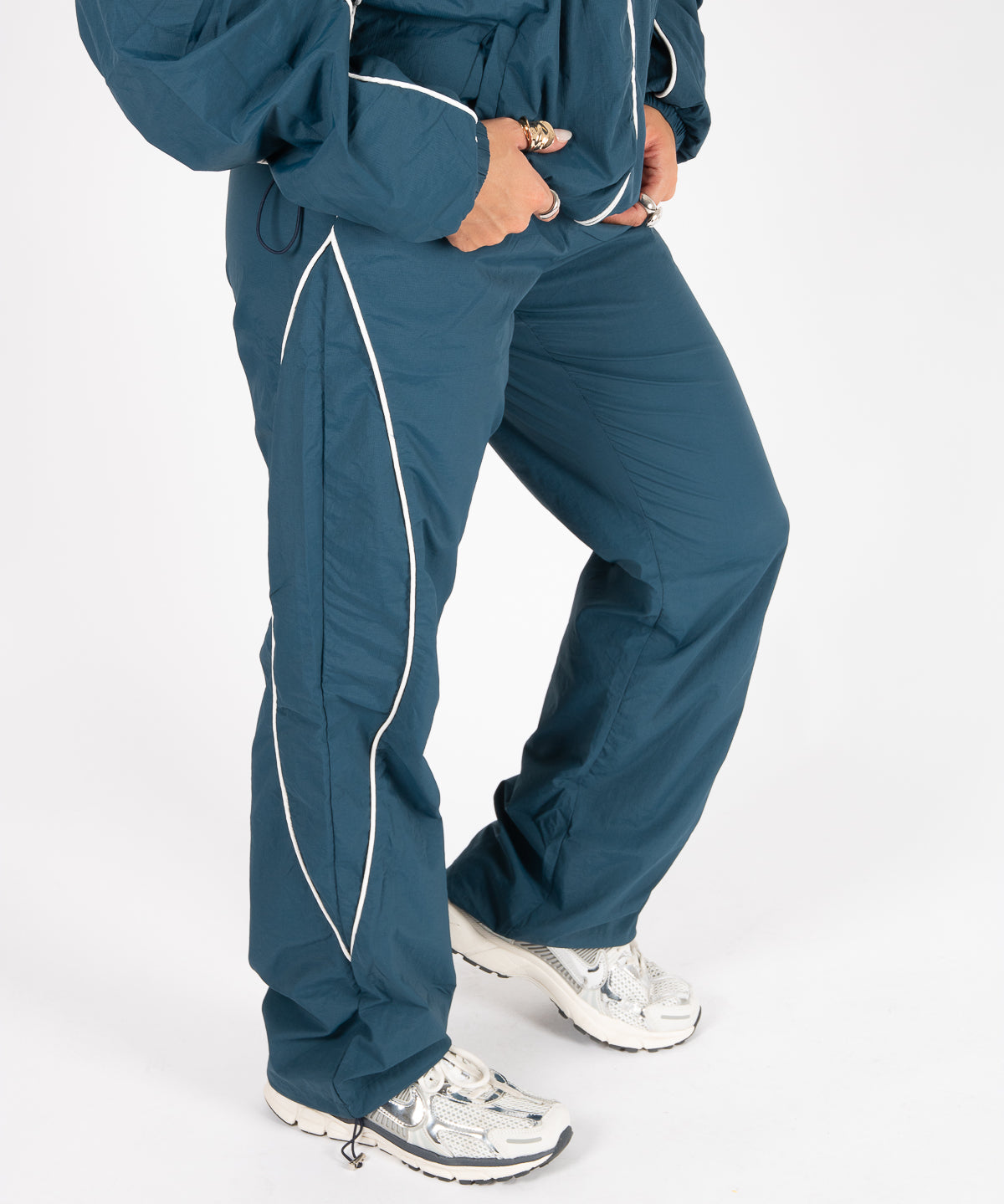 Navy Relaxed-Fit Shell Joggers With Logo & Piping