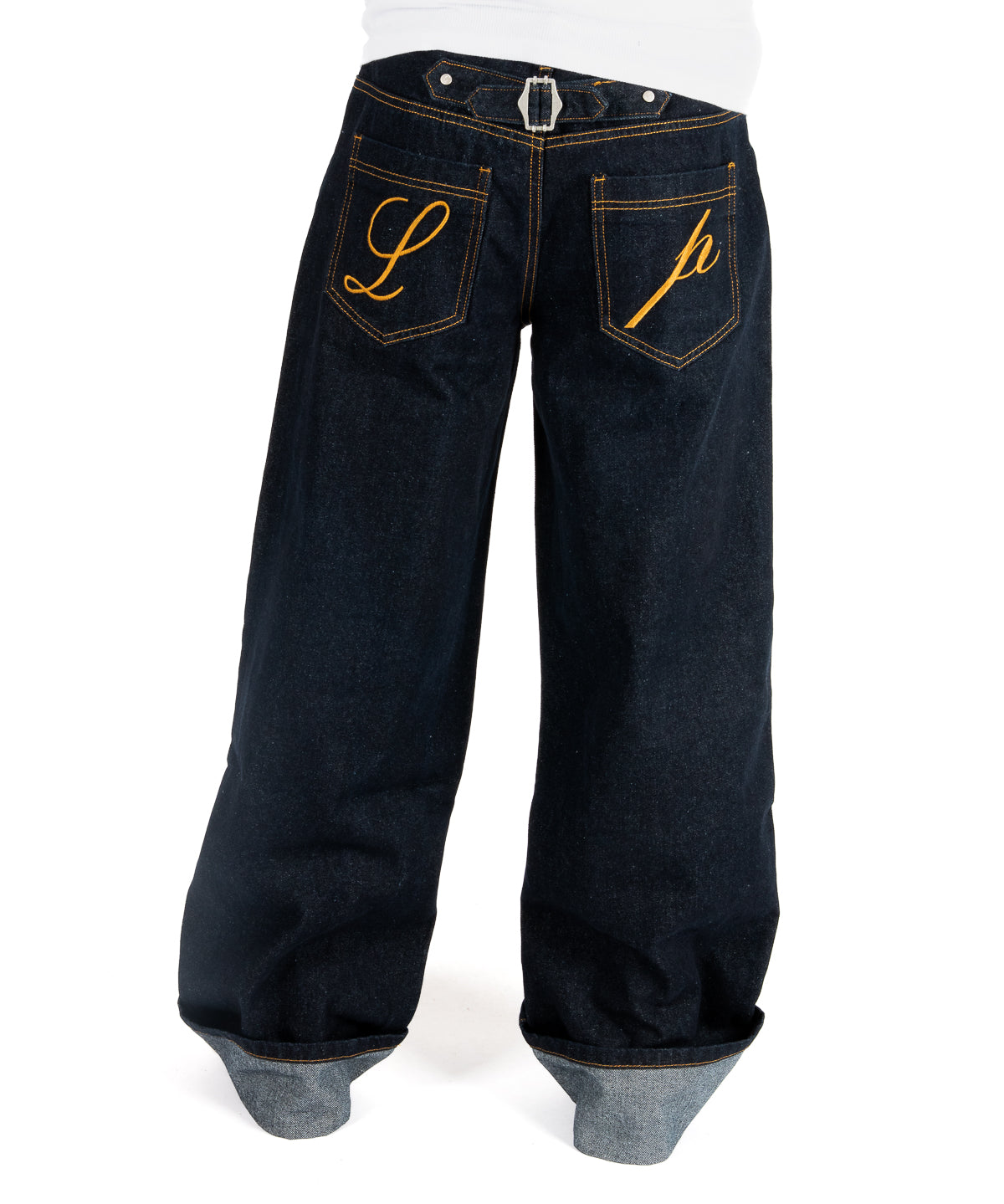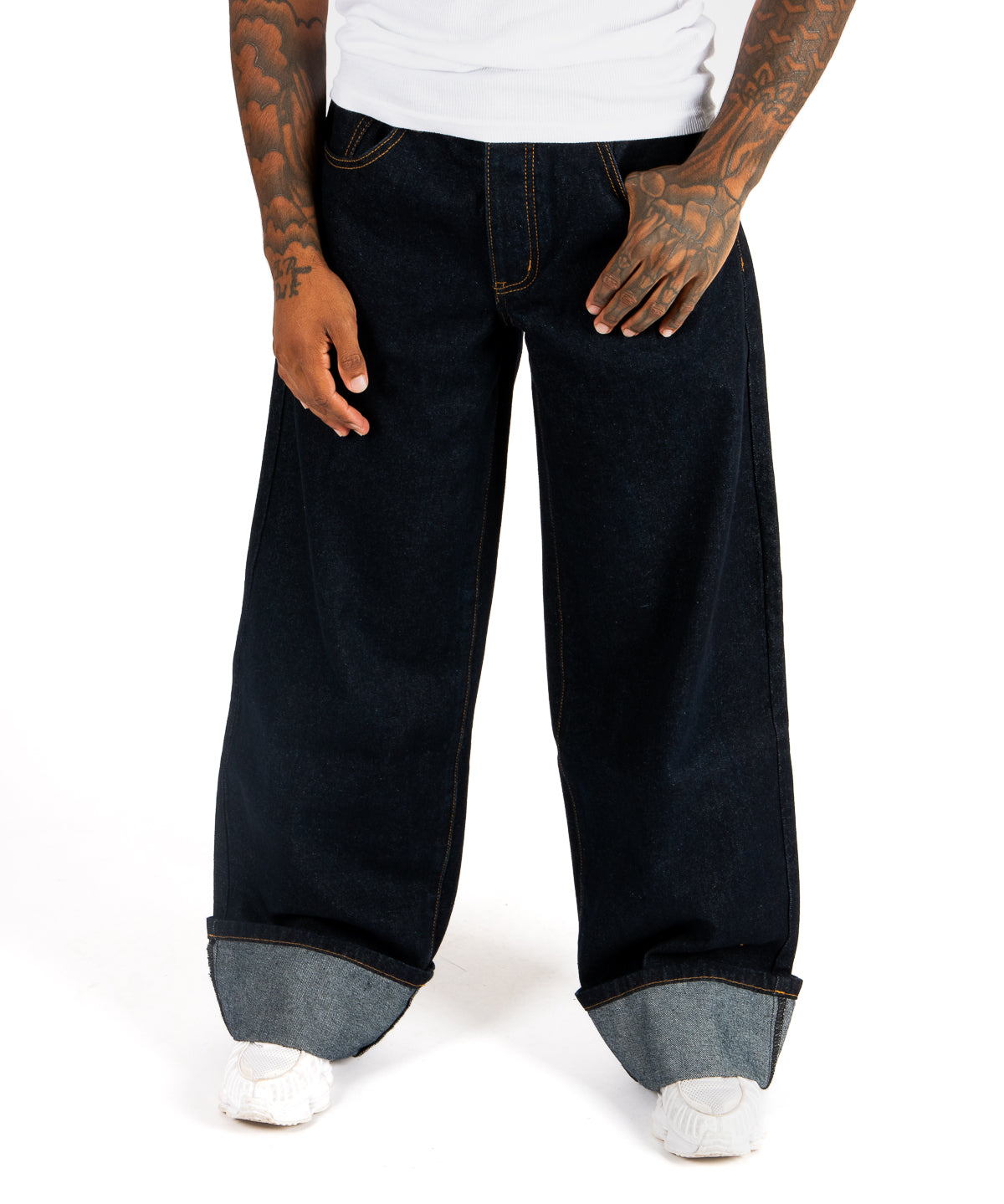 Raw Indigo Mid Rise Contrast Stitch Baggy Jeans