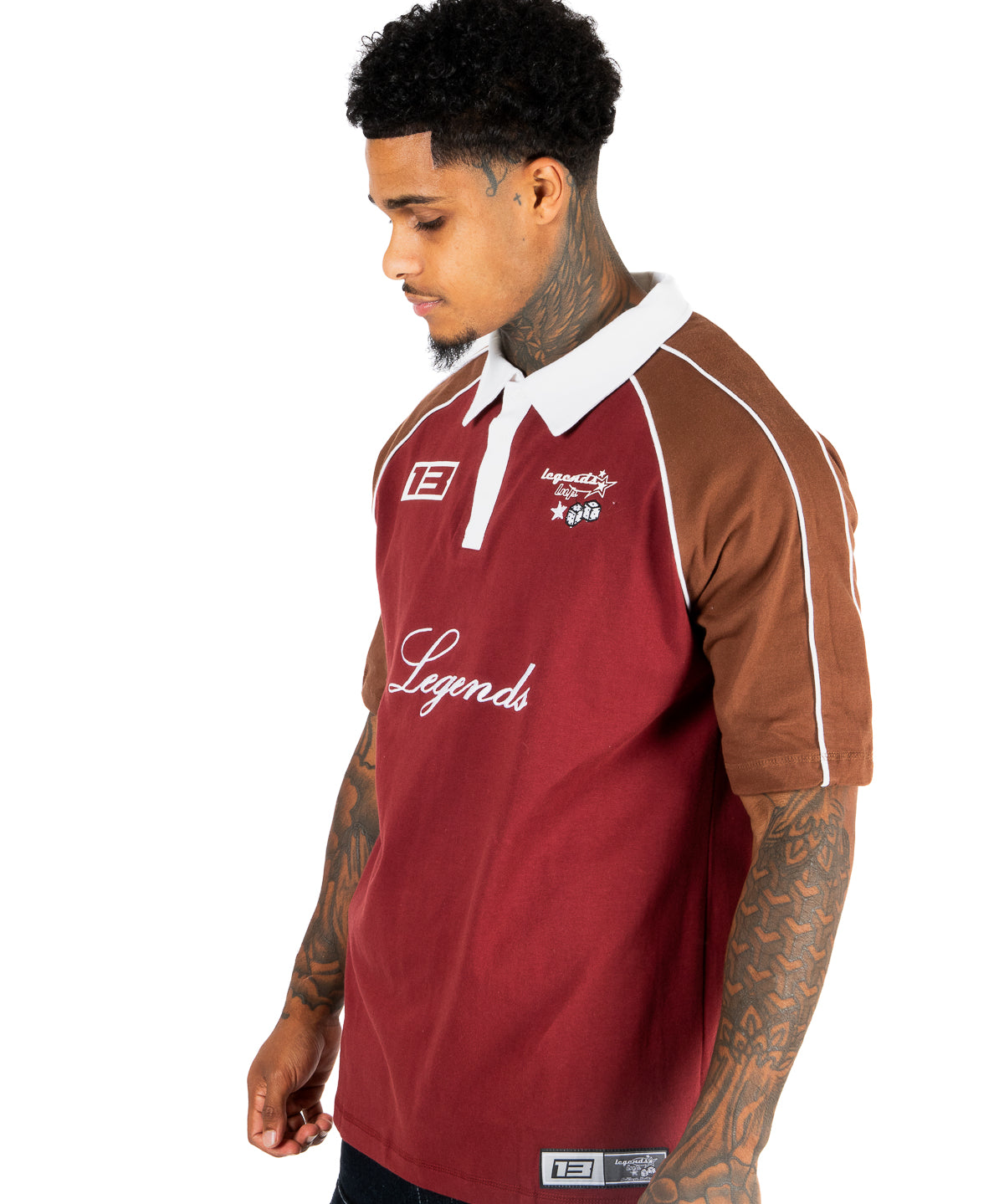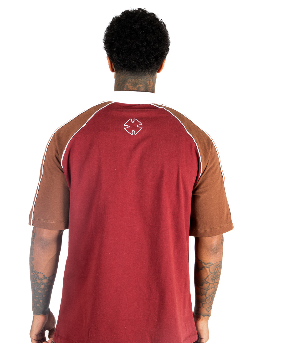 Burgundy Oversized Graphic Printed Polo T-Shirt