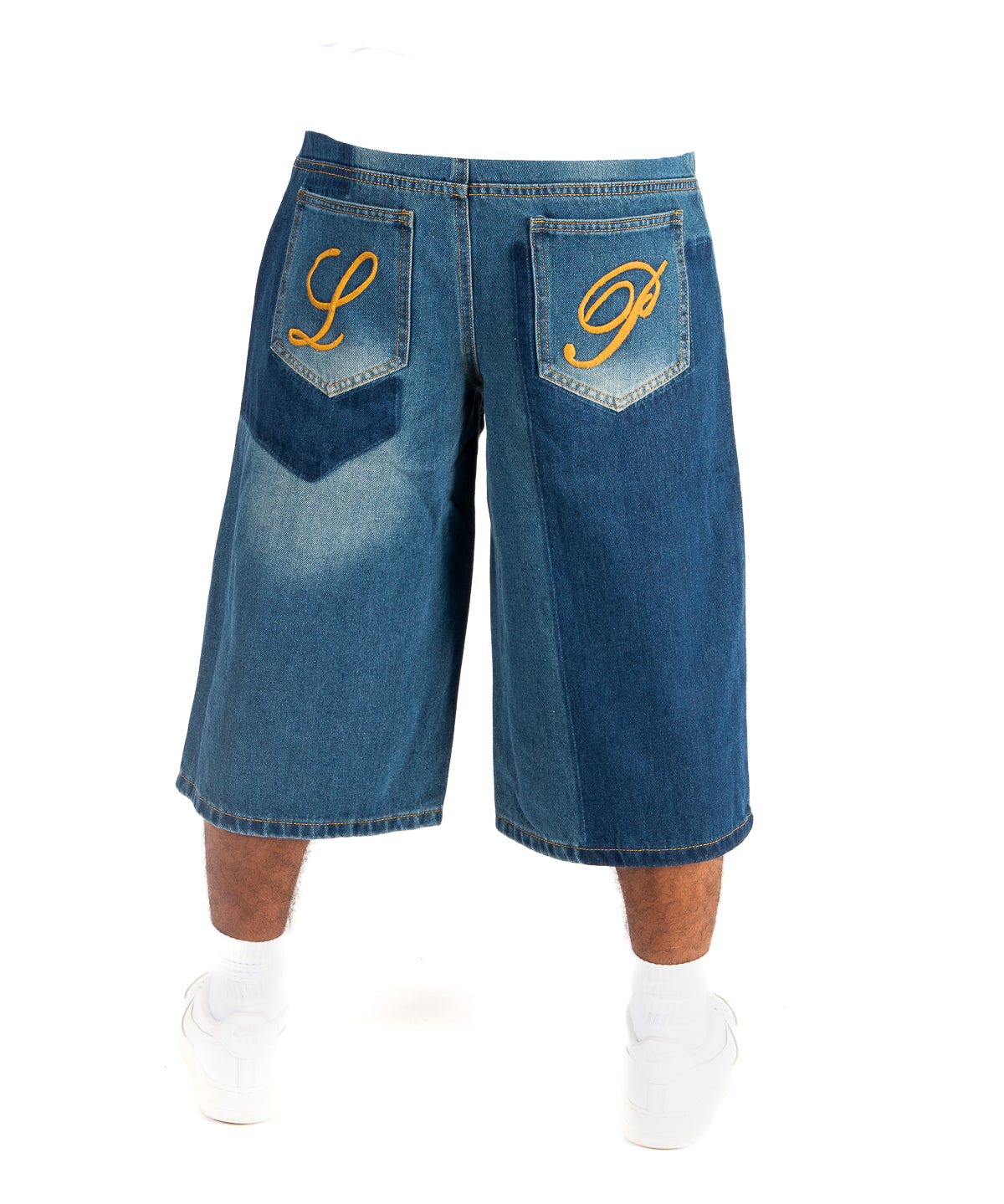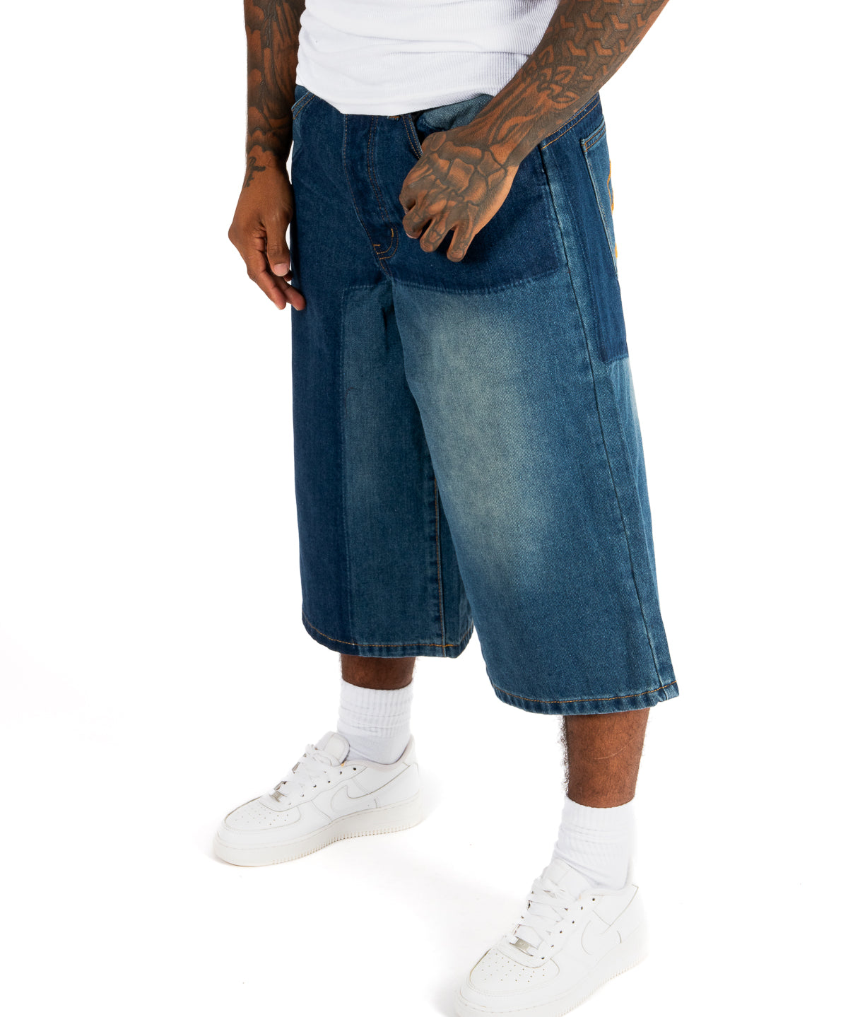 Inidigo Blue Patchwork Extra Baggy Denim Jorts