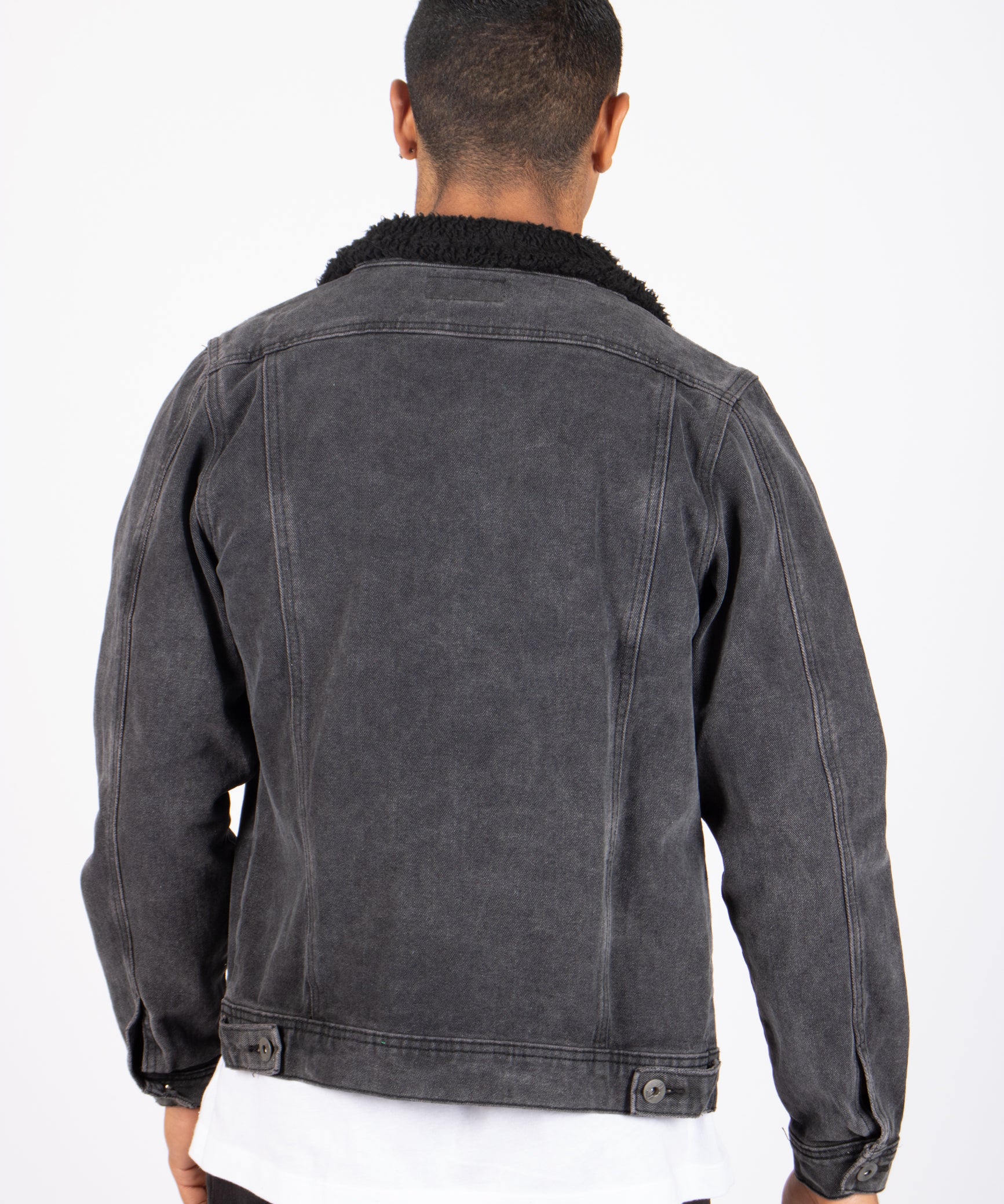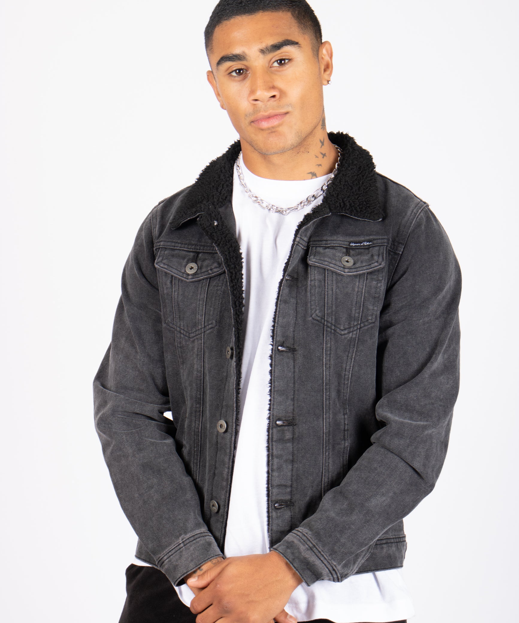 Norton Slim Fit Denim Jacket With Borg Collar In Washed Black