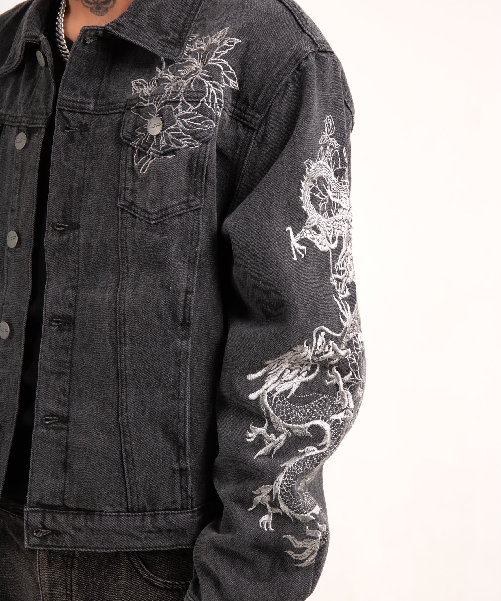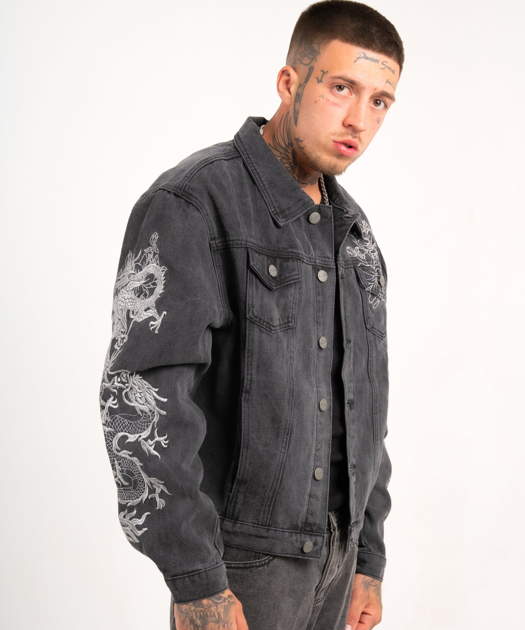 A World Dynasty Oversized Denim Jacket In Washed Black