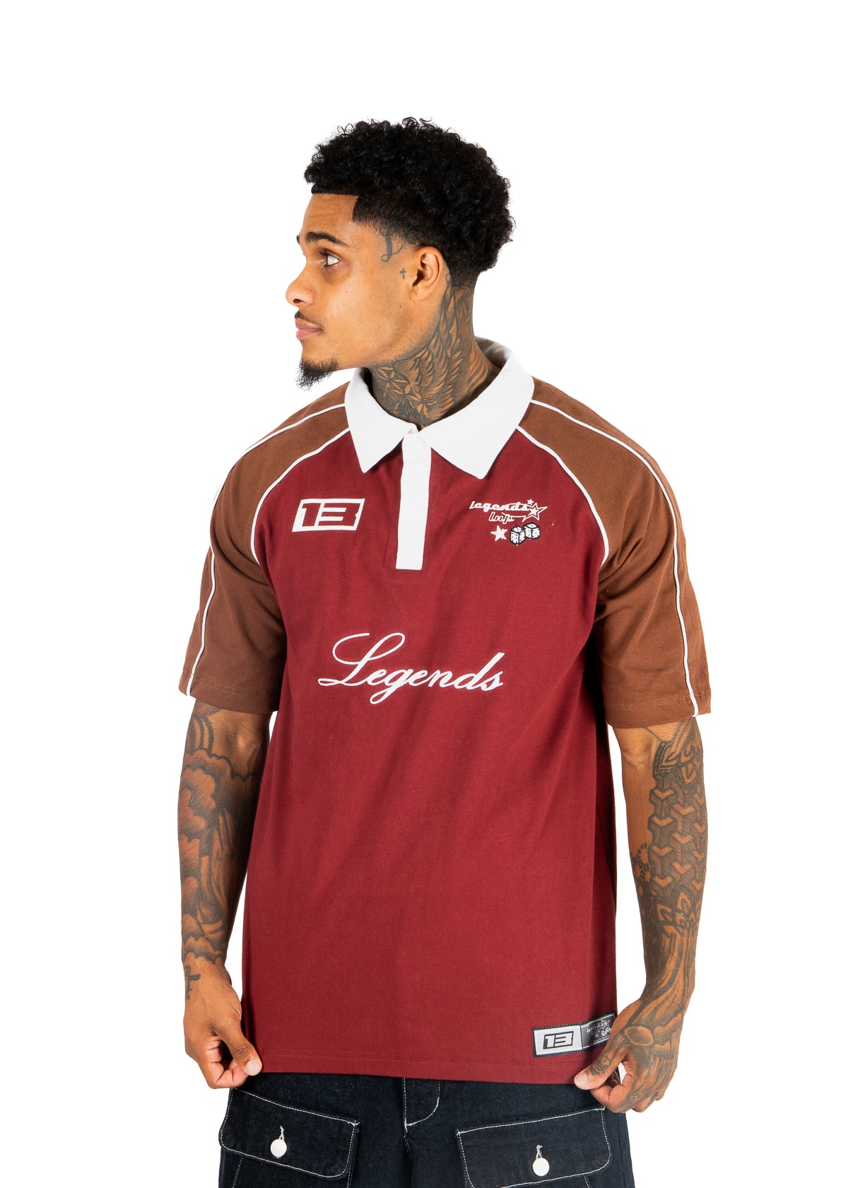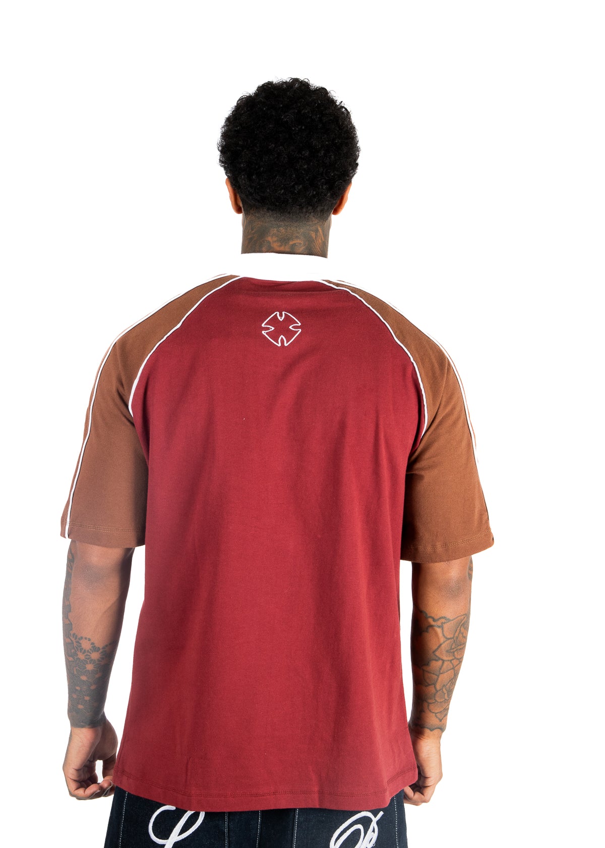 Burgundy Oversized Graphic Printed Polo T-Shirt