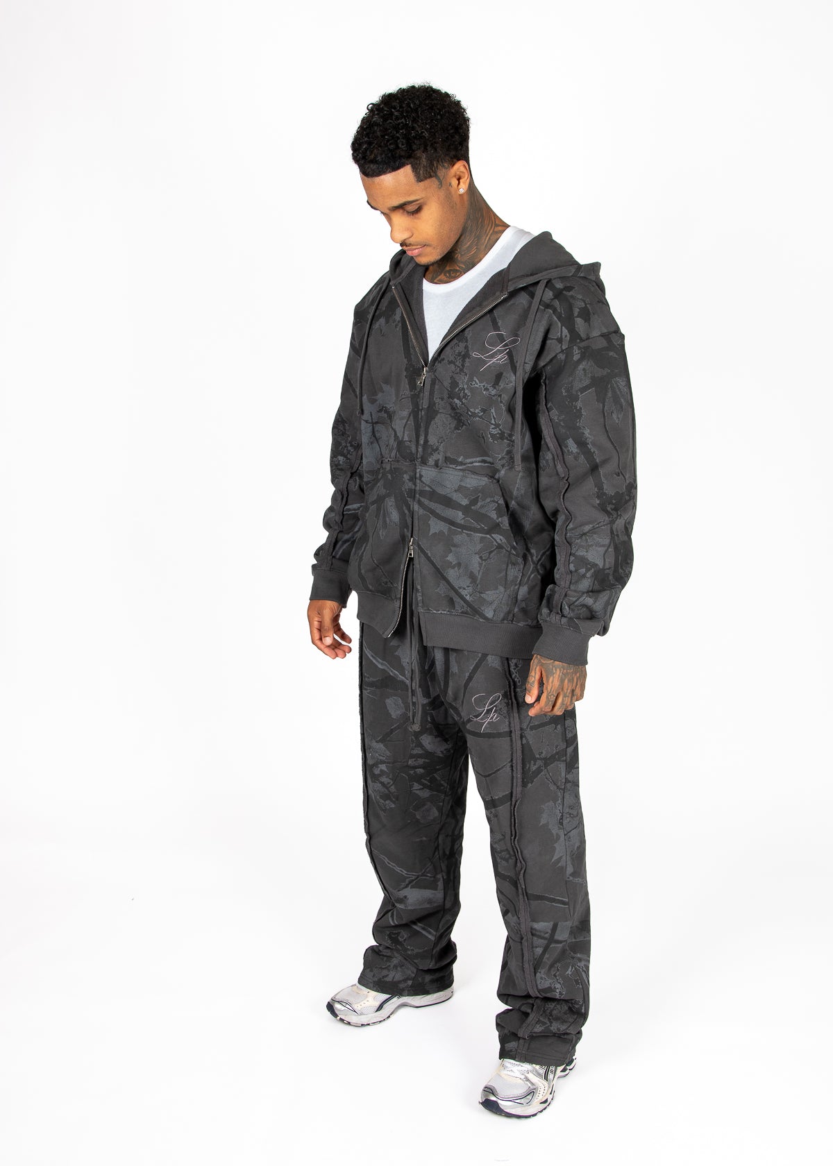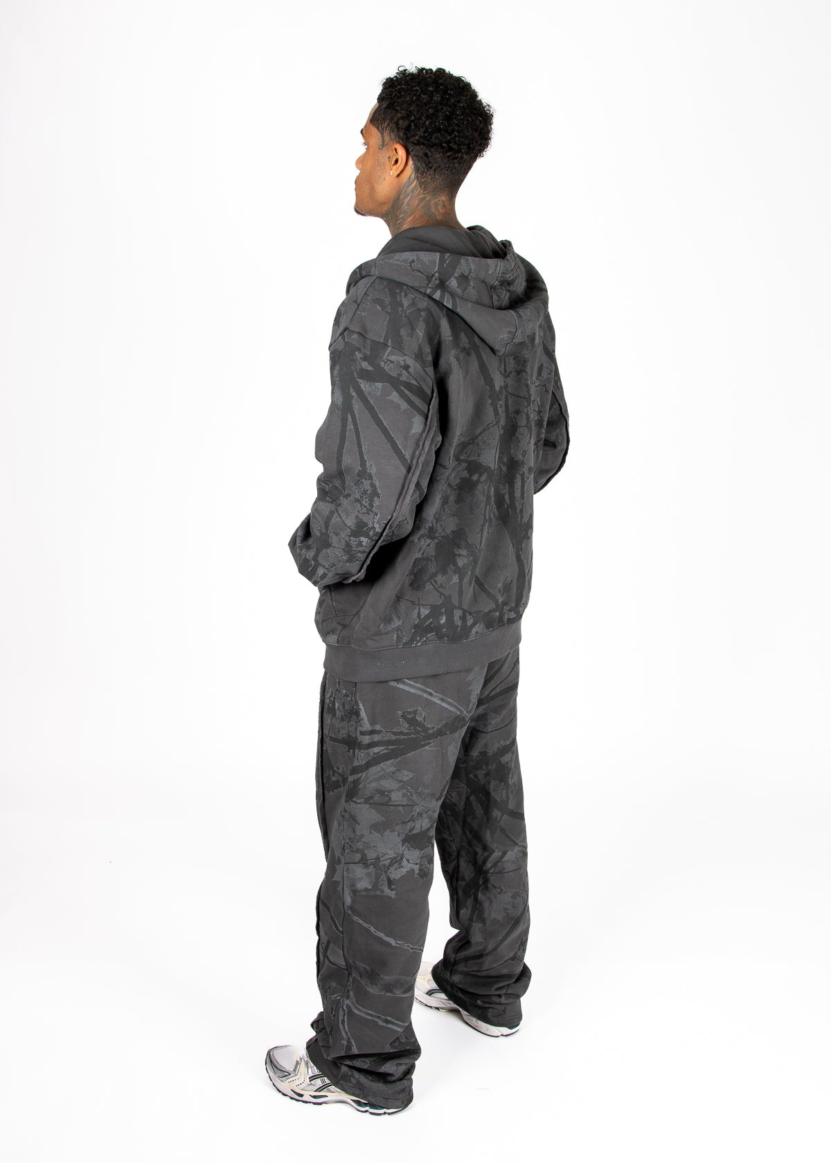 Oversized Black Camo Printed zip hoodie and jogger co- ord