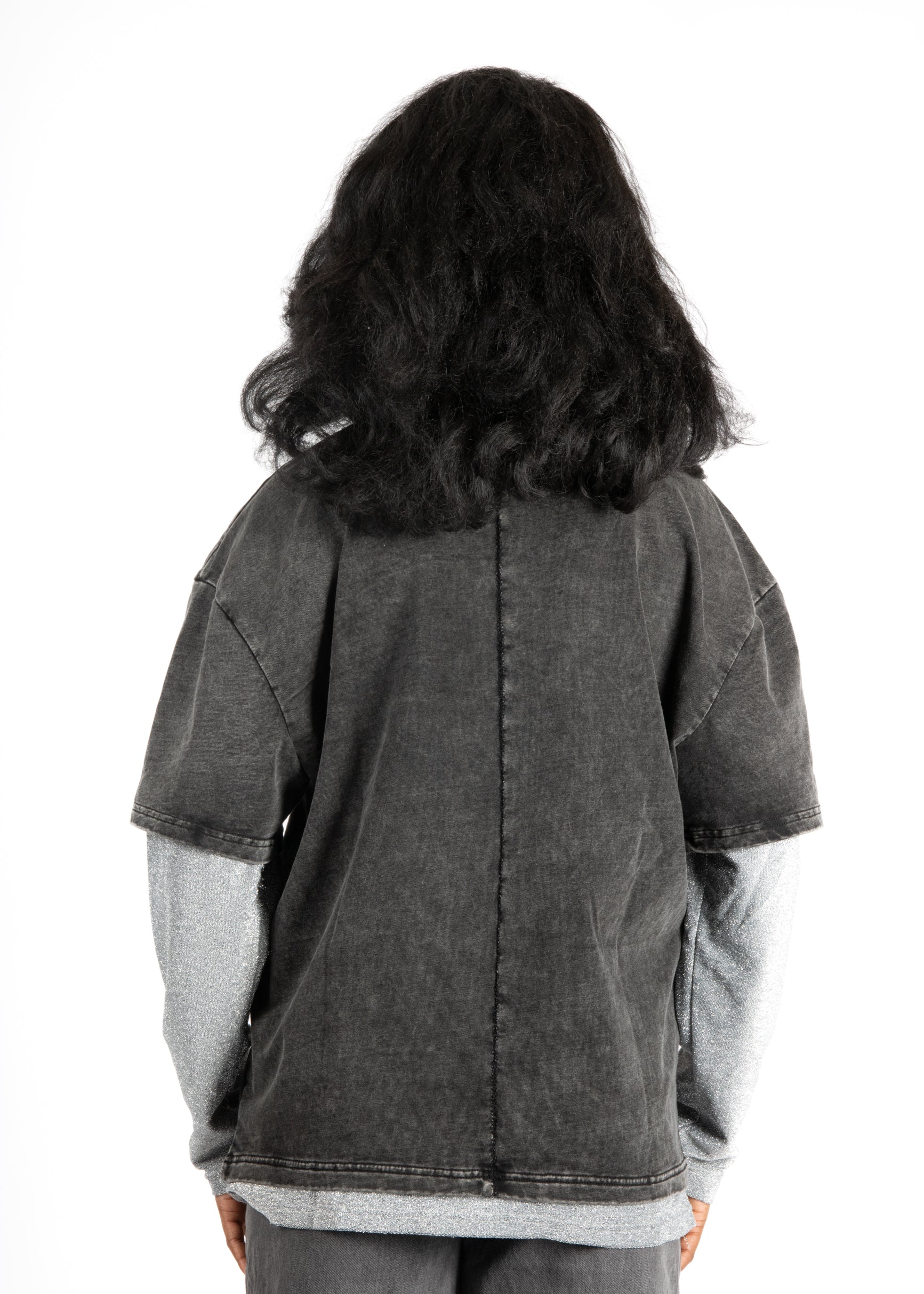 Oversized Charcoal Long Sleeve "Renaissance" Graphic Printed T-Shirt