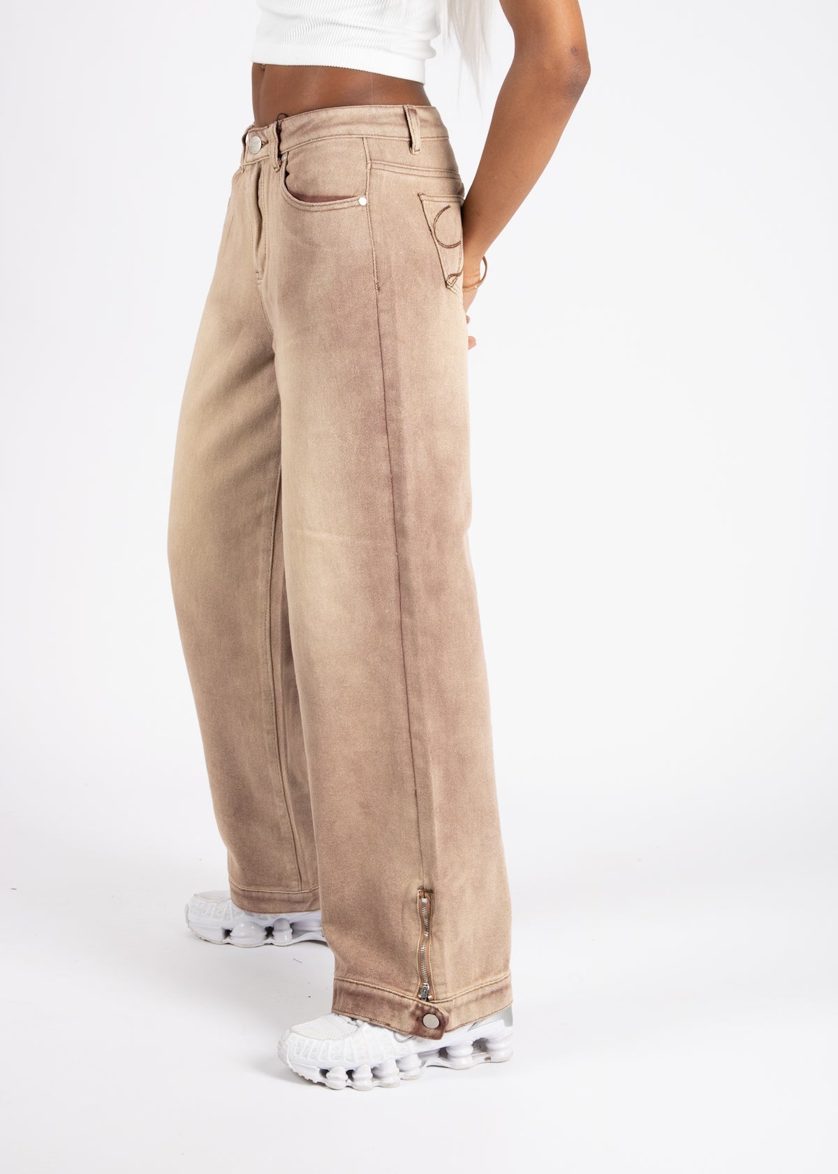Sand Wash Brown Contrast Stitch Barrel Varsity Jeans