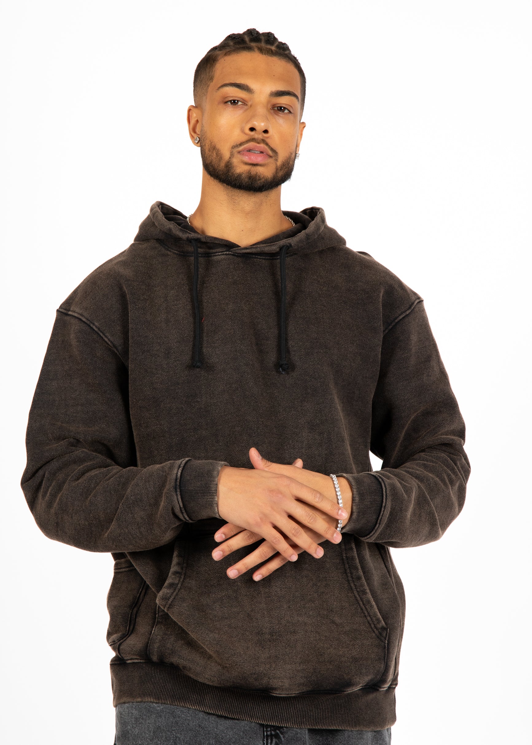 Acid-Wash Pocket Detail Hoodie