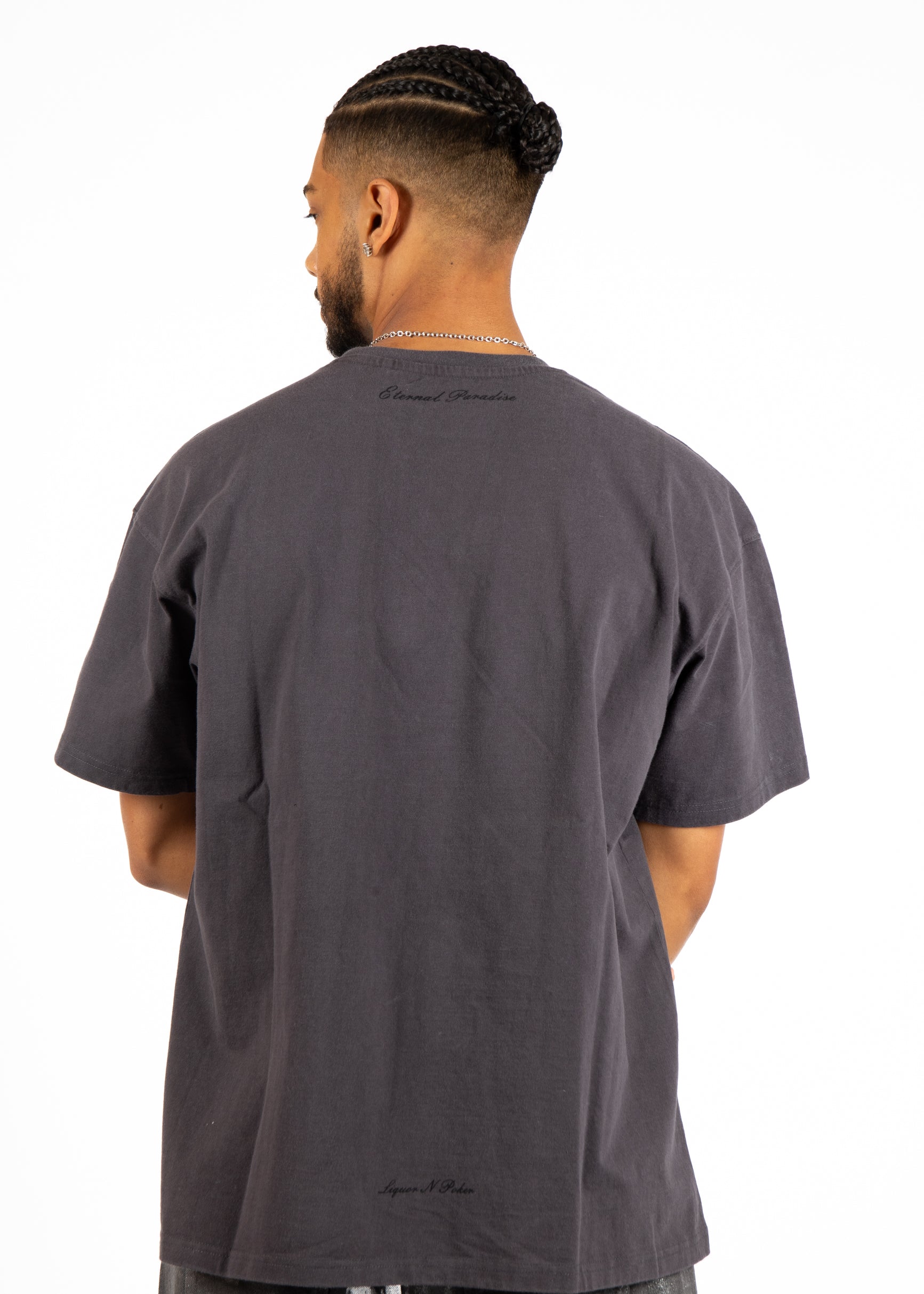 Grey Premium Oversized 'Eternal Paradise' Printed T-Shirt