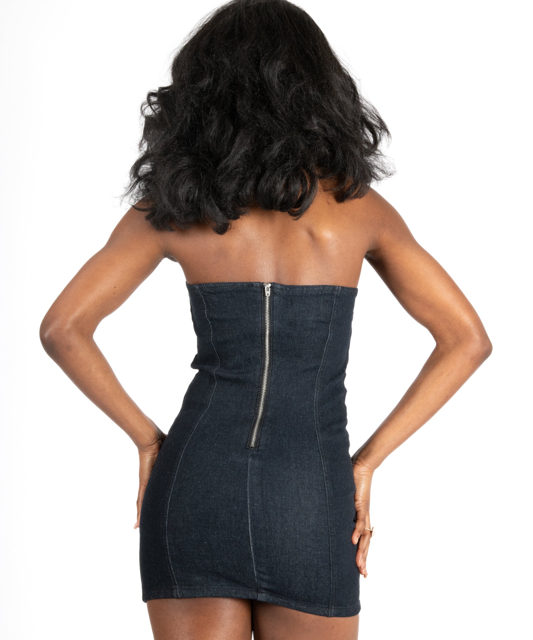 Vice Versa Denim Mini Dress With Contrast Stitch
