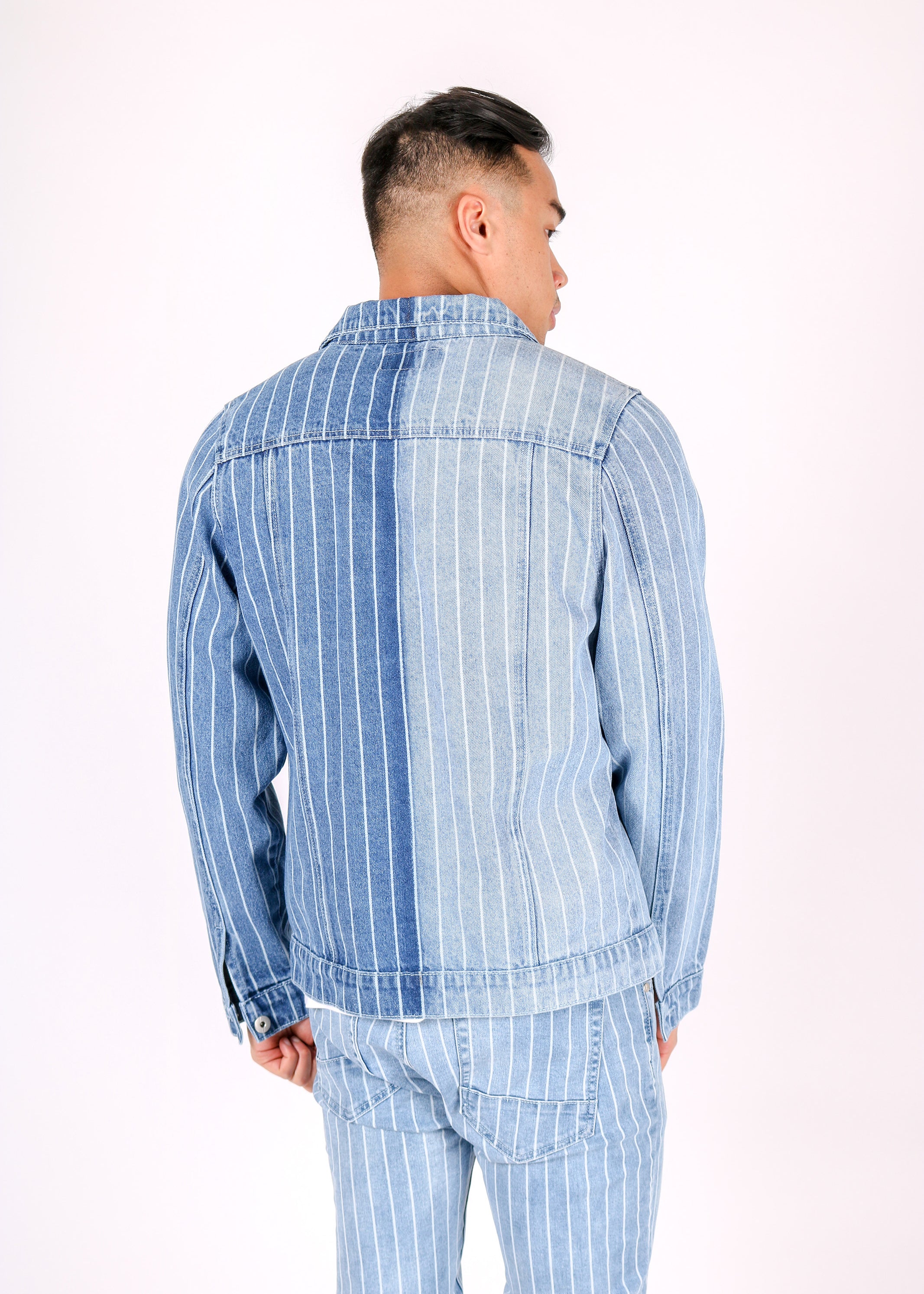 Norton Spliced & Pinstripe Slim Fit Denim Jacket