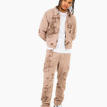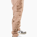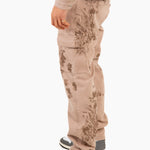 Sand & Brown Floral Twill Relaxed Cargo Jeans