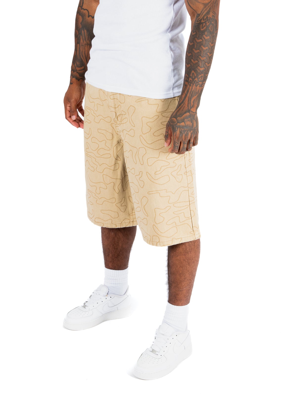 Sand & Brown Floral Twill Relaxed Cargo Shorts