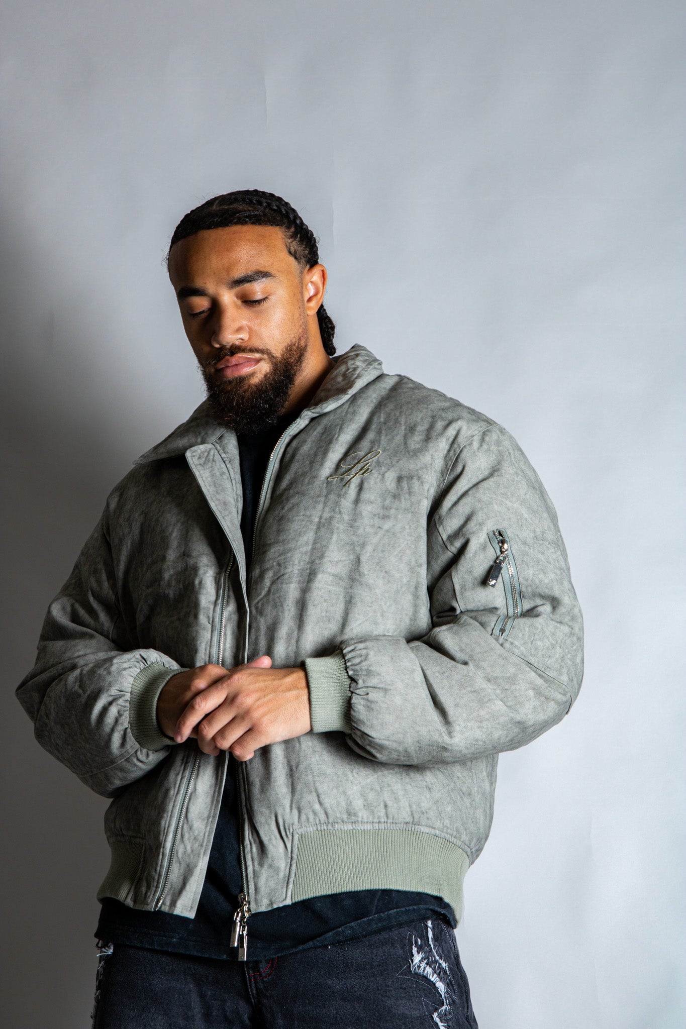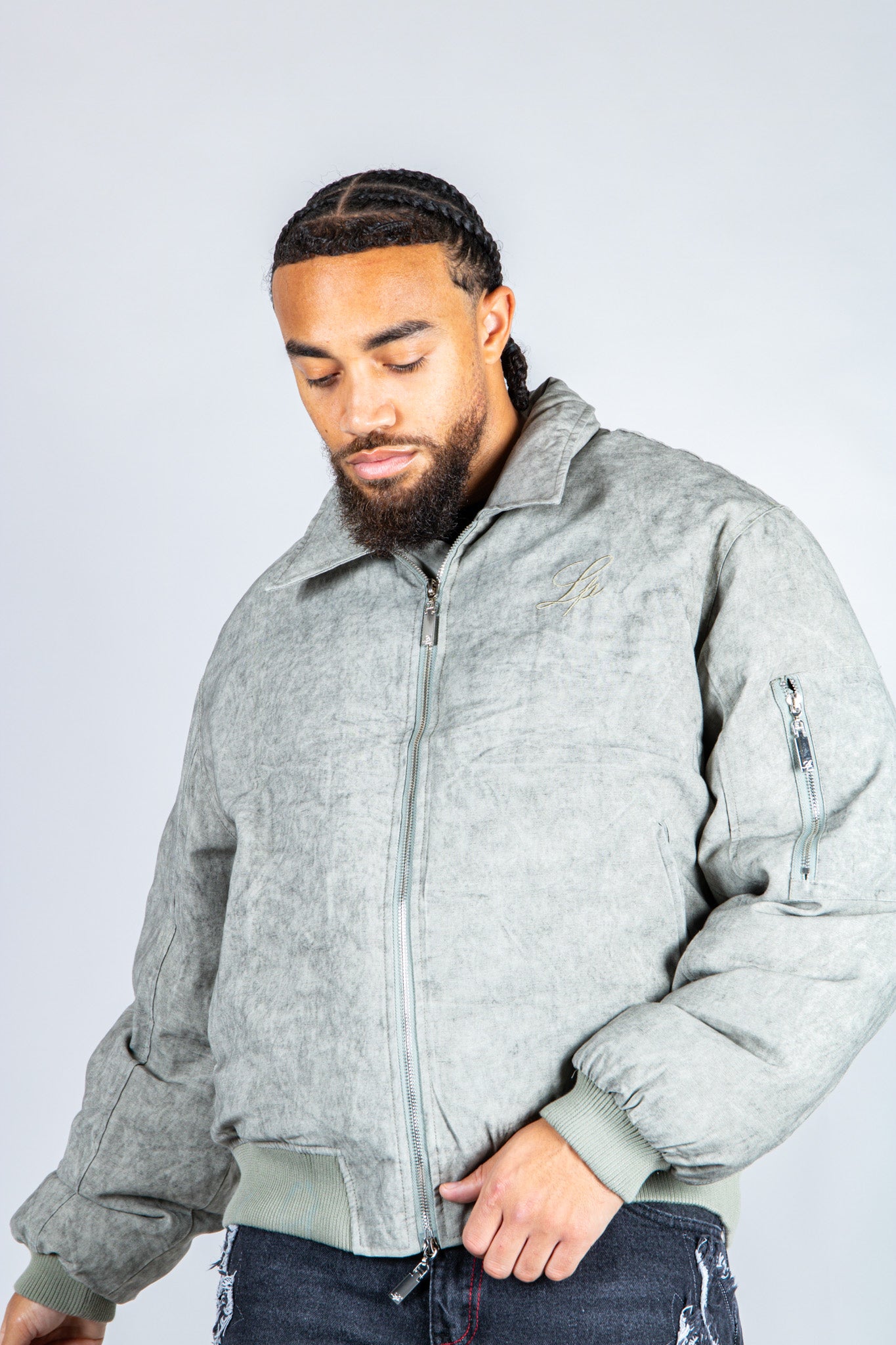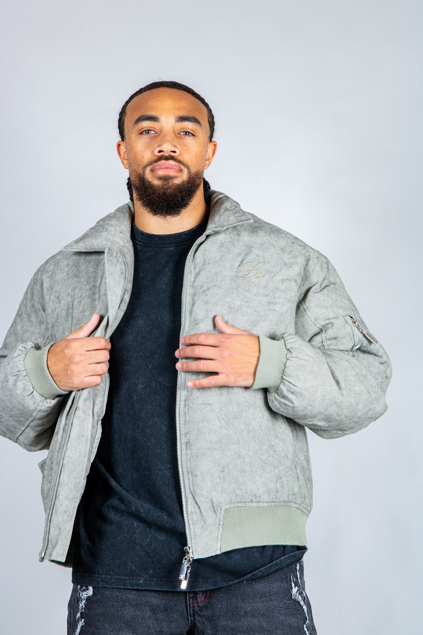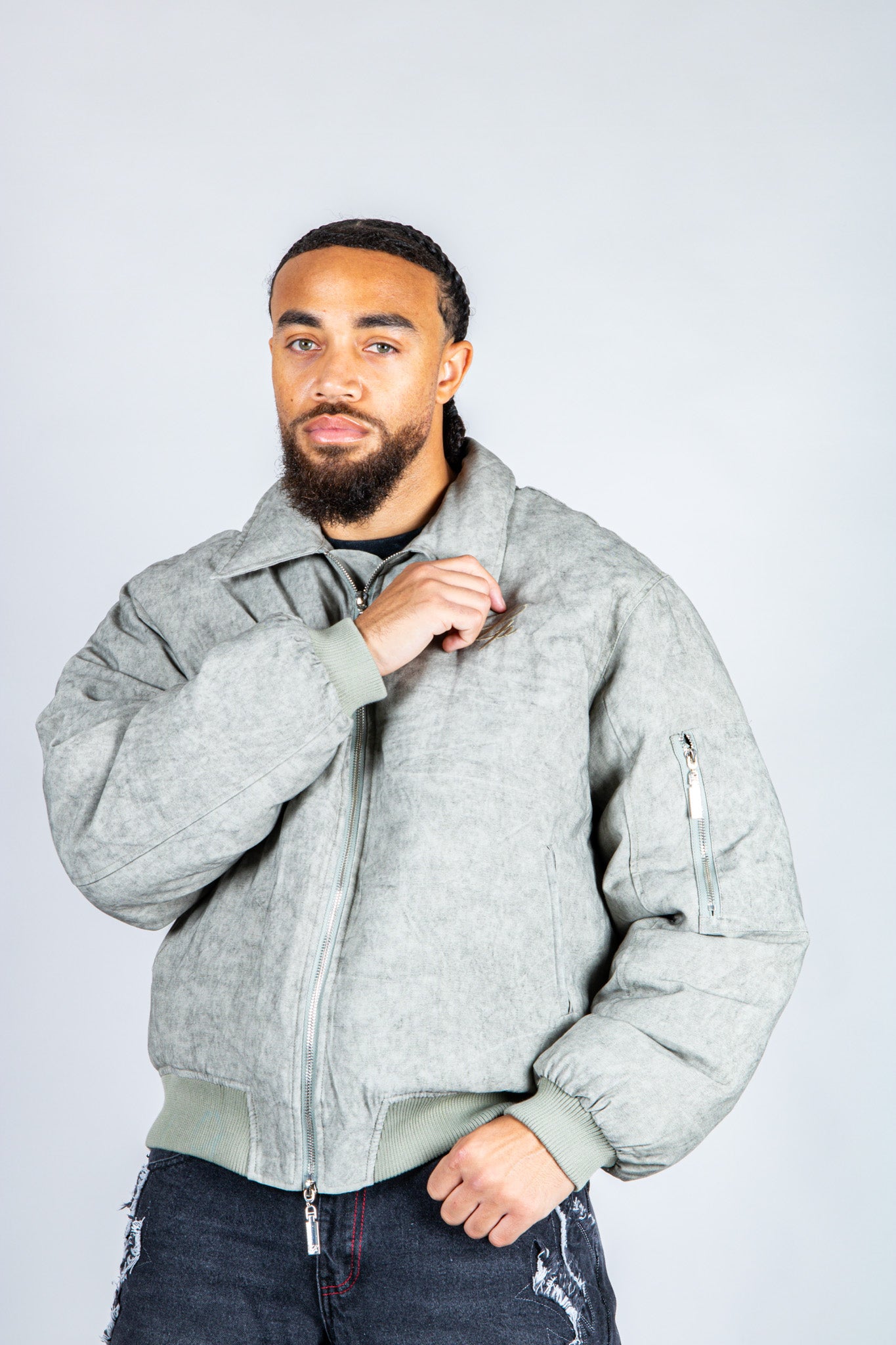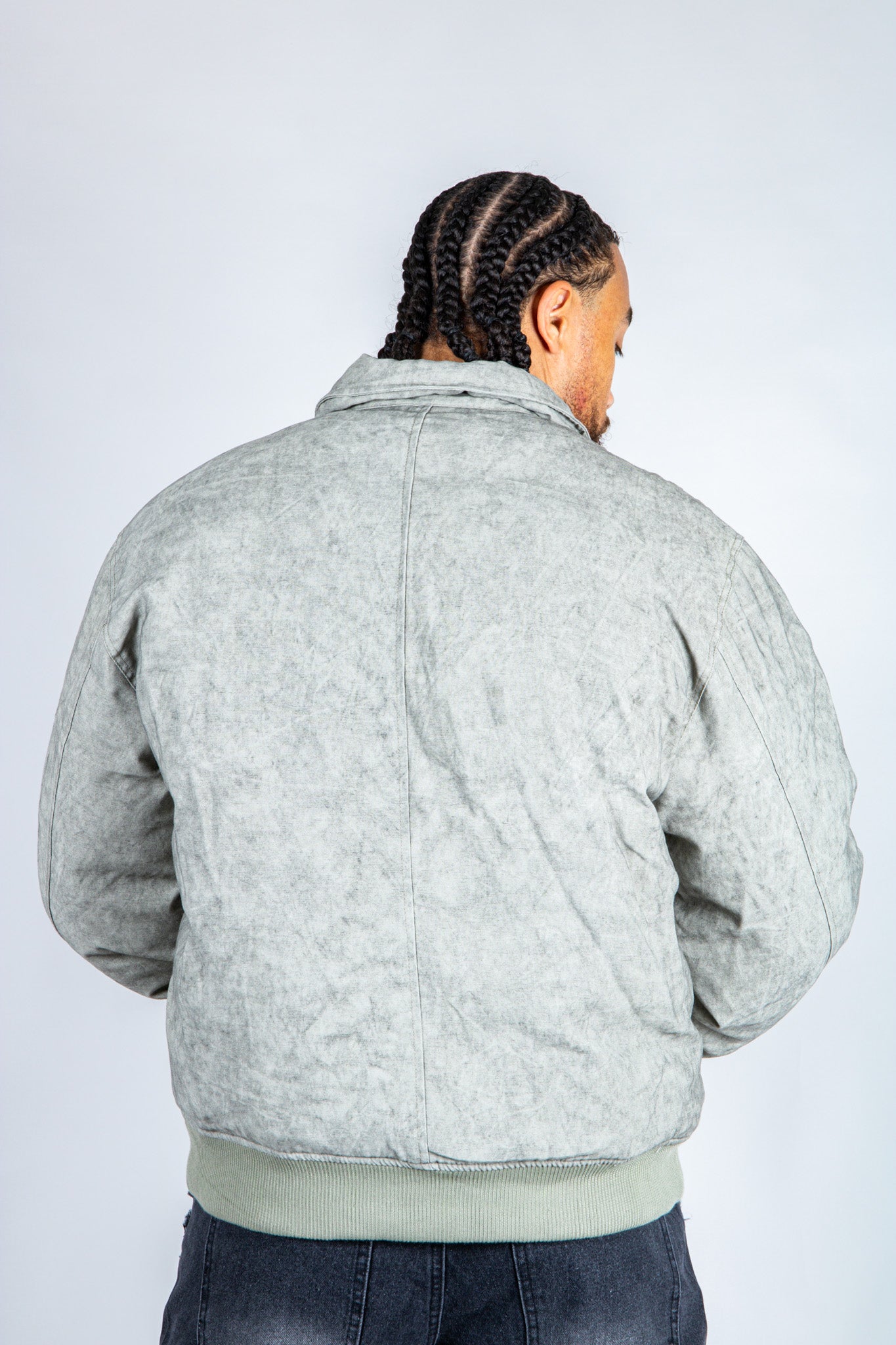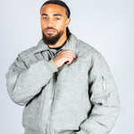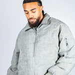 Maverick Oversized Nylon Bomber Jacket in Acid Wash Gre