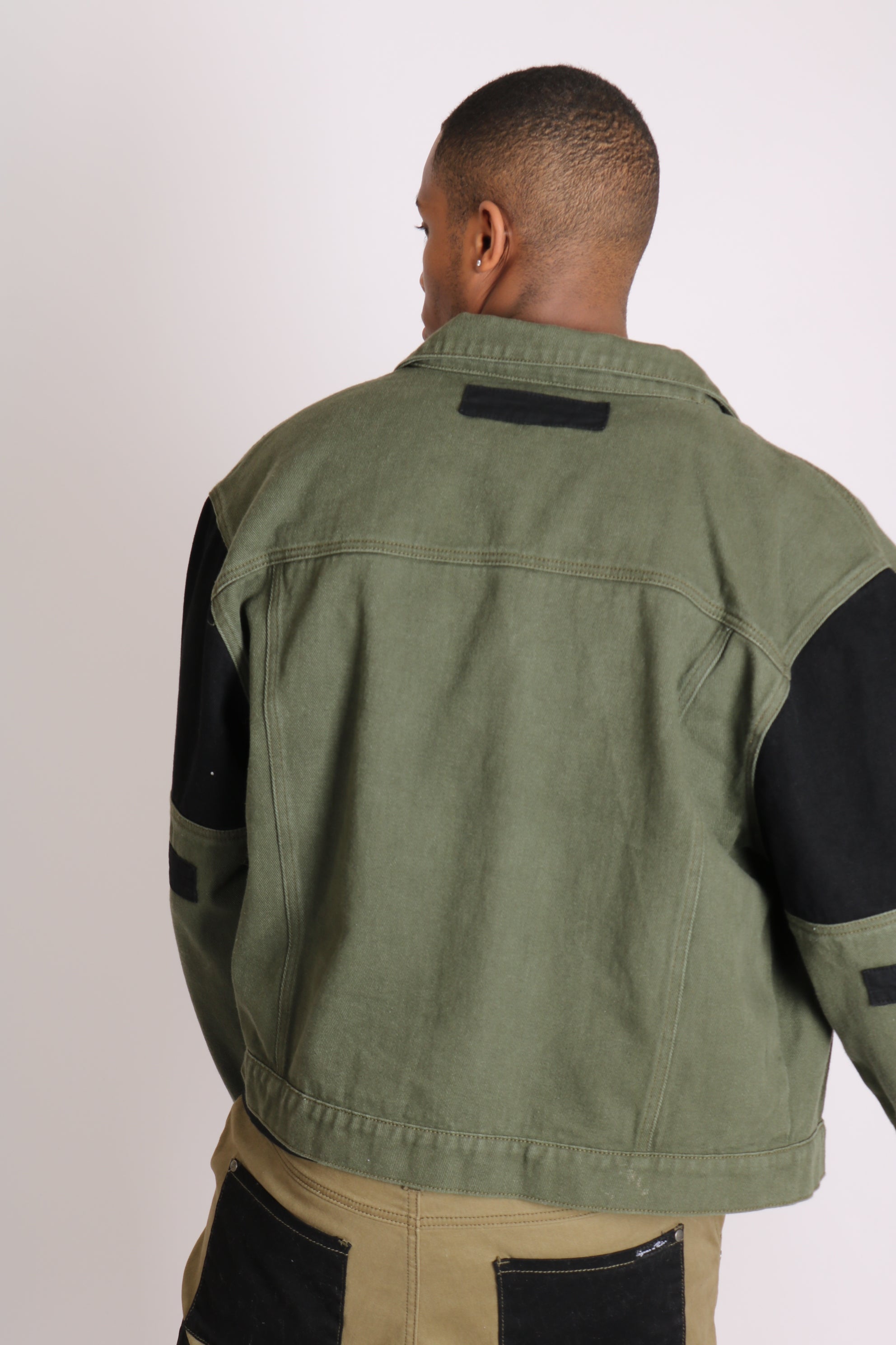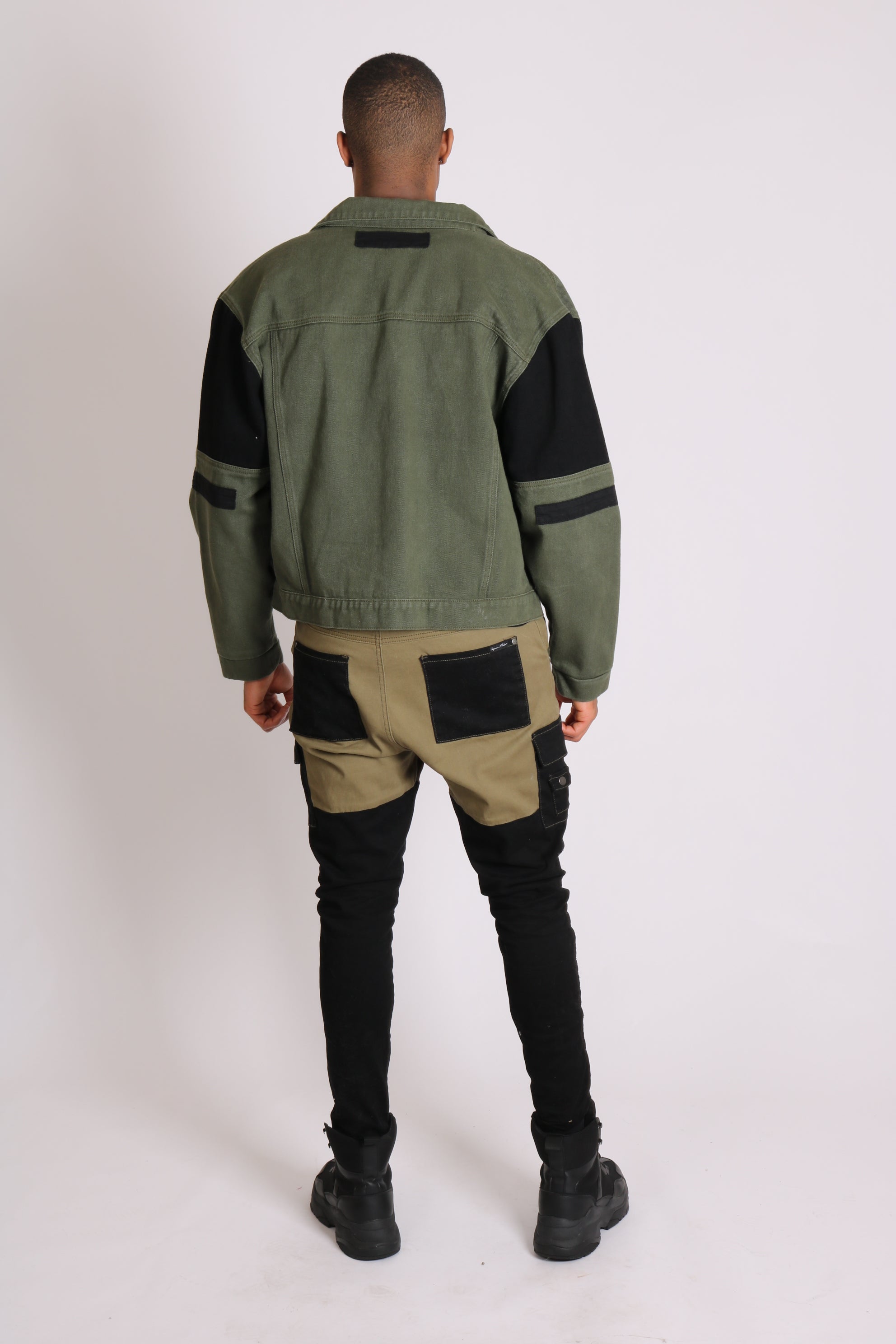 Faro Oversized Black & Khaki Contrast Utility Denim Jacket
