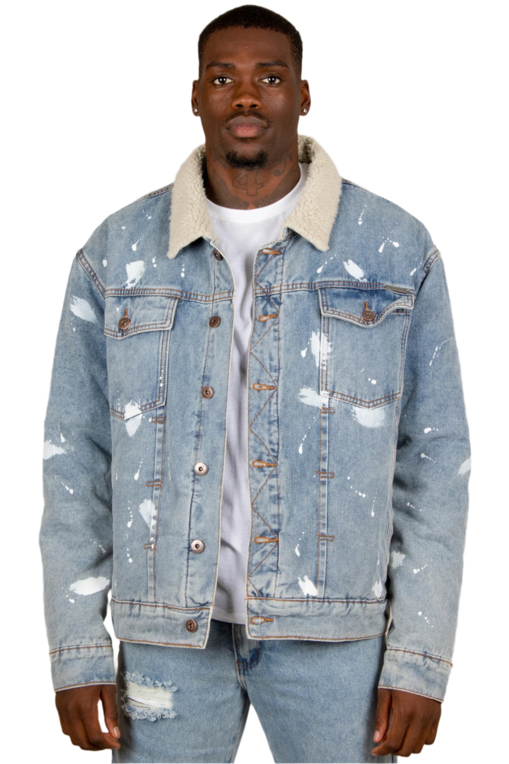 Introducing our Oversized Borg Denim Jacket with Paint Splatter, the epitome of rugged individuality and artistic flair. Elevate your outerwear game with this statement piece that effortlessly marries style and creativity. The slim fit design provides a sleek and modern look, while the sherling collar adds a touch of classic warmth. The daring paint splatter details on the denim create a unique visual appeal, embracing a fearless and unapologetically bold aesthetic. Crafted to stand out, this jacket becomes a canvas for your self-expression, encapsulating a fusion of contemporary fashion and artistic edge in one versatile piece.