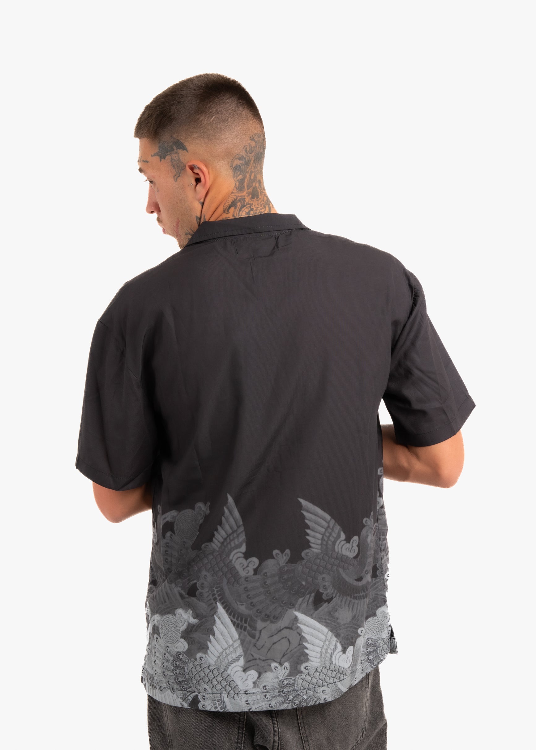 Oversized Boxy Shirt With Ombre Japanese Bird Print