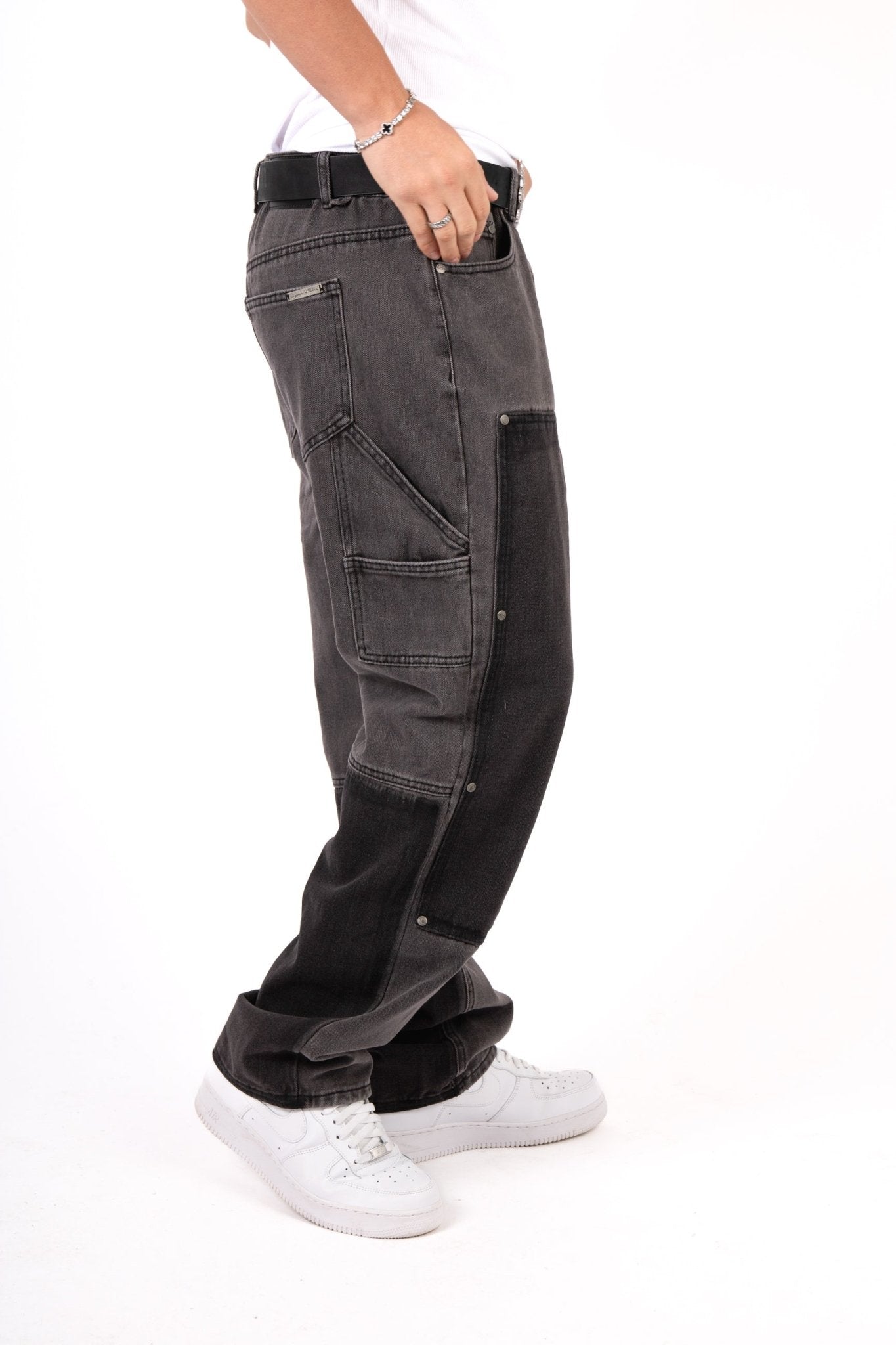 Grey & Black Patchwork Frayed Hem Jeans - Liquor n Poker