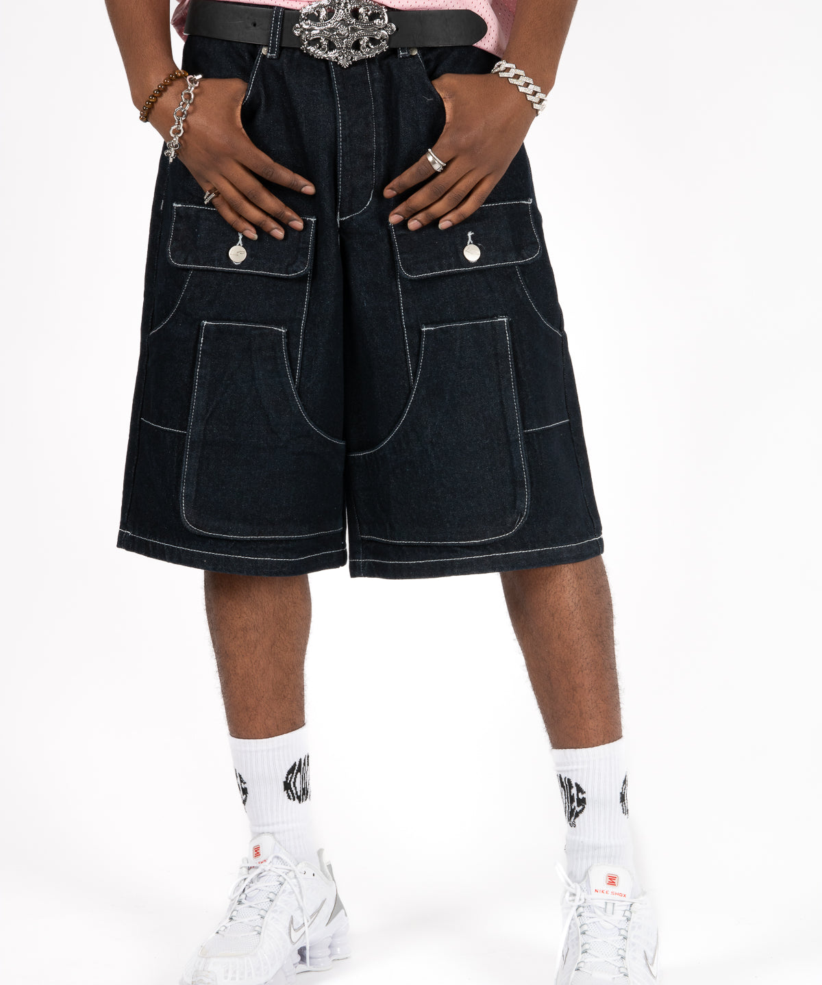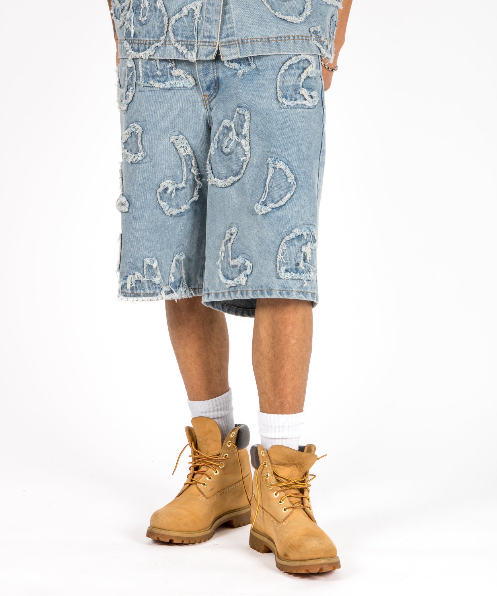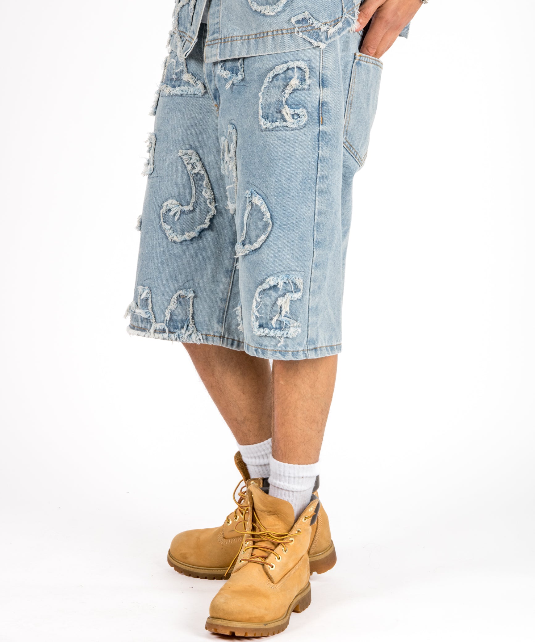 Inidigo Blue Patchwork Extra Baggy Denim Jorts