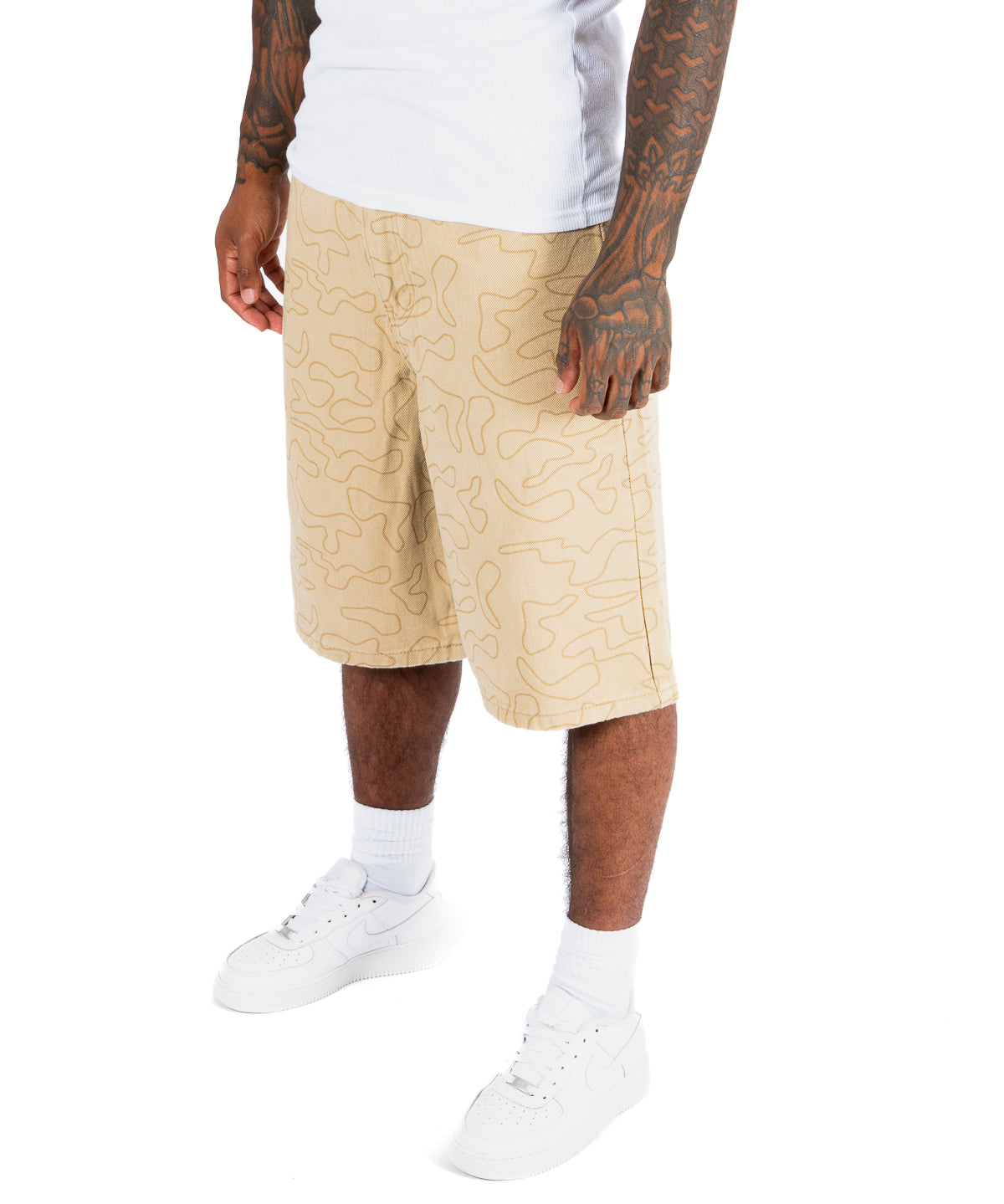 Beige Camo Relaxed Denim Jorts