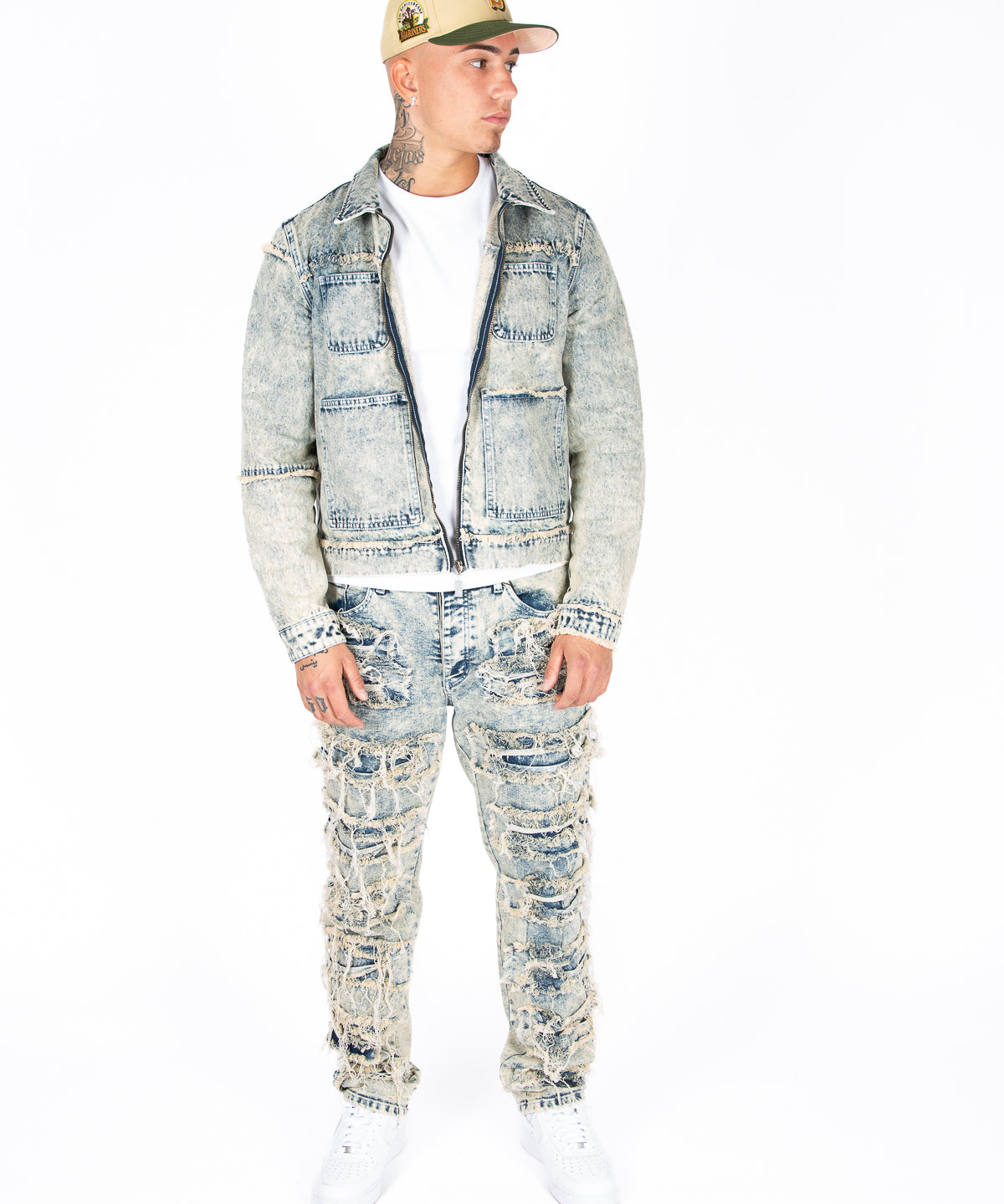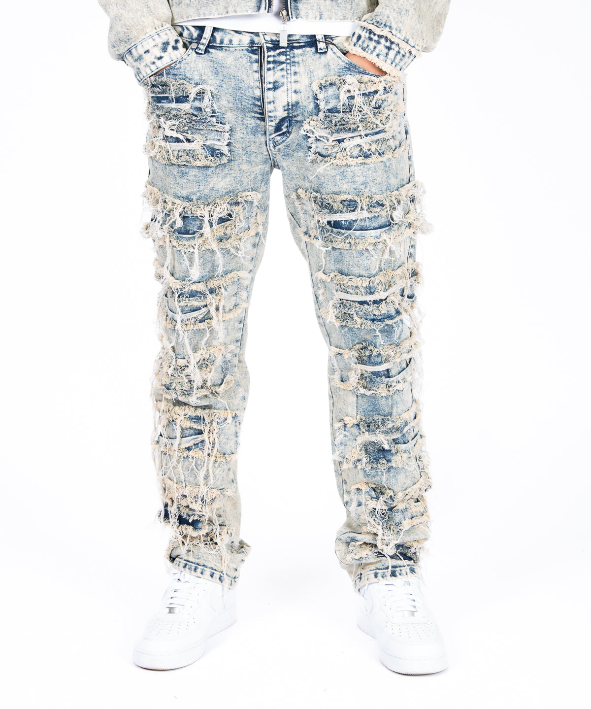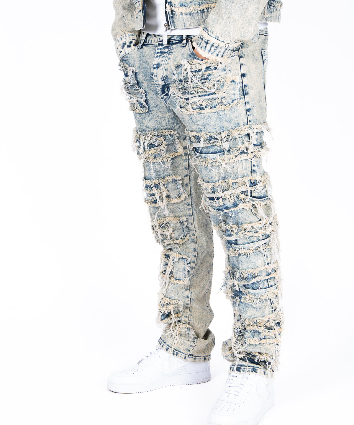 Raw Indigo Mid Rise Contrast Stitch Baggy Jeans