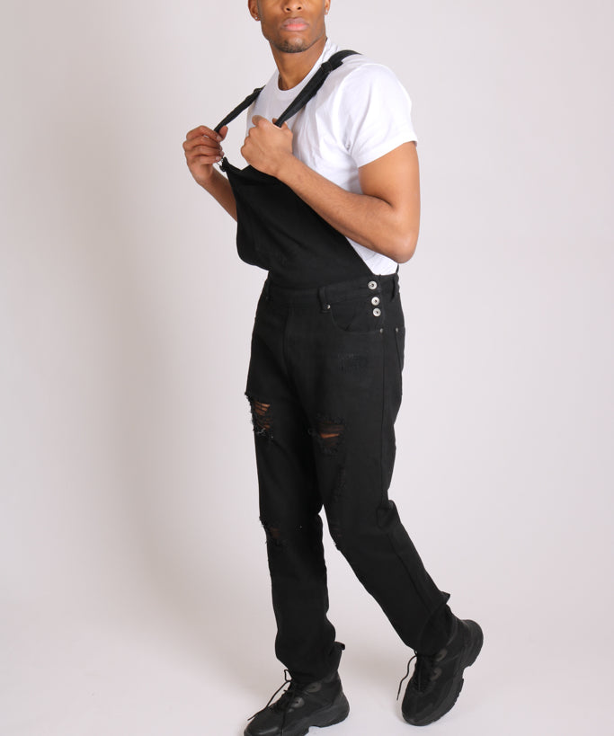 Louisiana Distressed Denim Dungaree In Vintage Stonewash