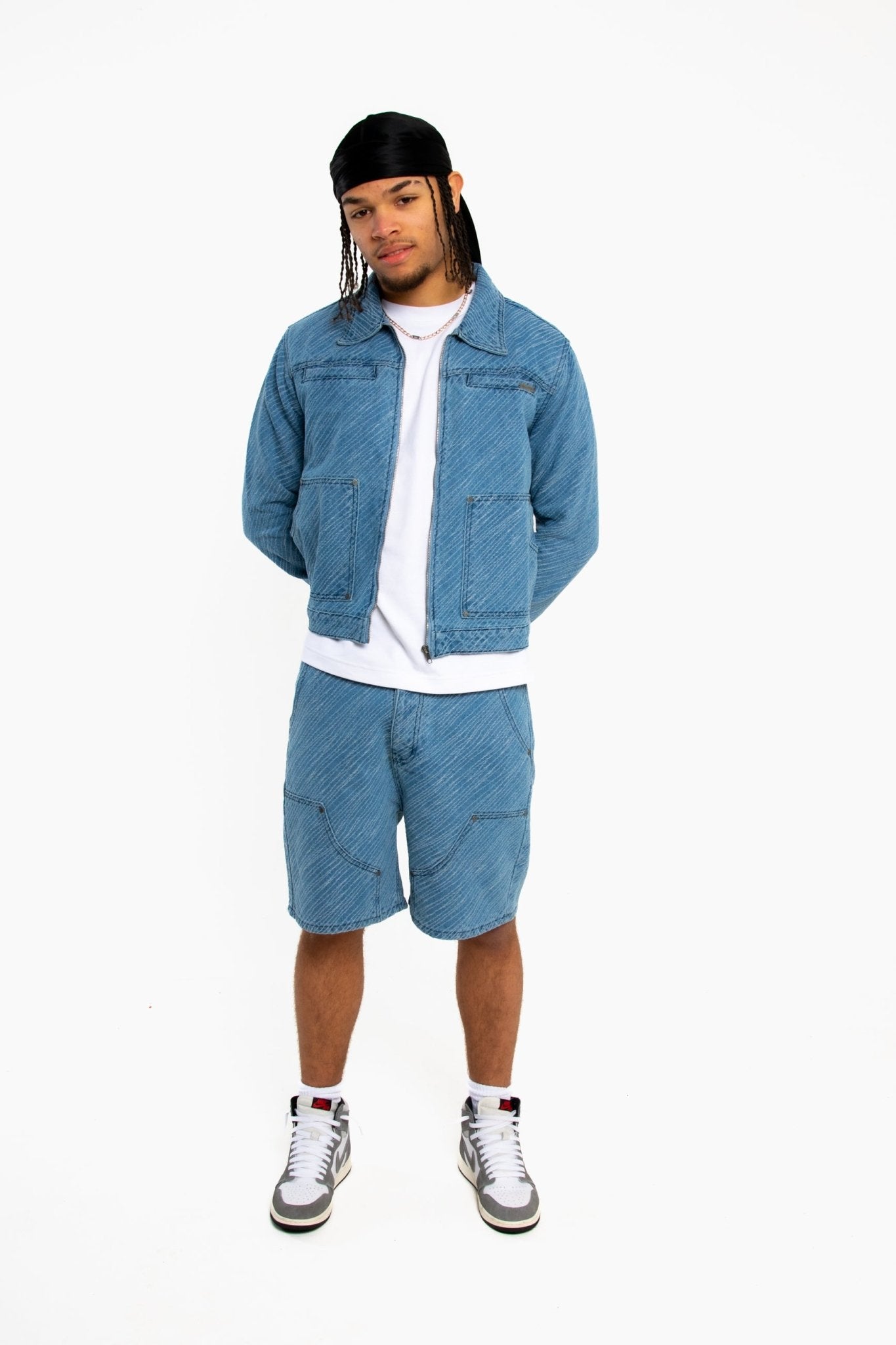 Introducing our Oversized Pinstripe Jacquard Denim Shorts, a bold fusion of style and comfort. Crafted with precision, these shorts feature eye-catching pinstripe jacquard patterns that elevate your look with sophistication and flair. The addition of carpenter panels brings a rugged edge to the design, blending urban aesthetics with classic denim craftsmanship. Whether you're hitting the streets or lounging with friends, these oversized shorts offer both versatility and statement-making style, ensuring you stand out from the crowd with every step.