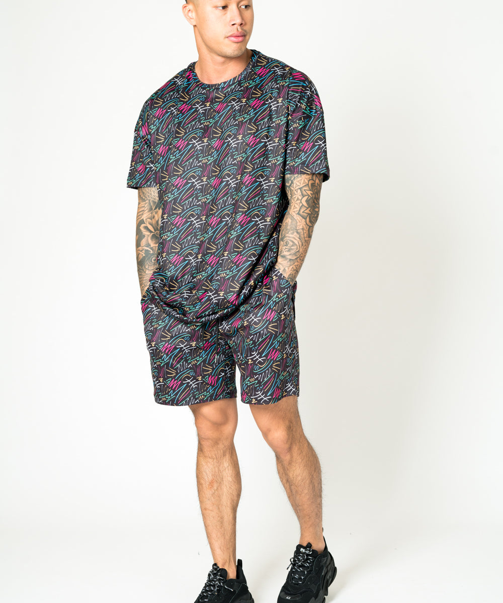 Graffiti Printed Black Shorts