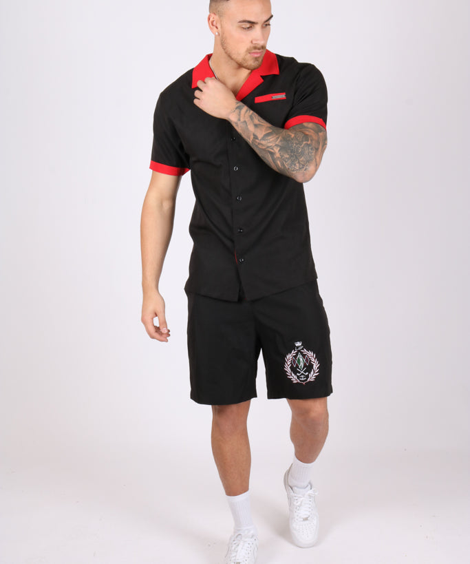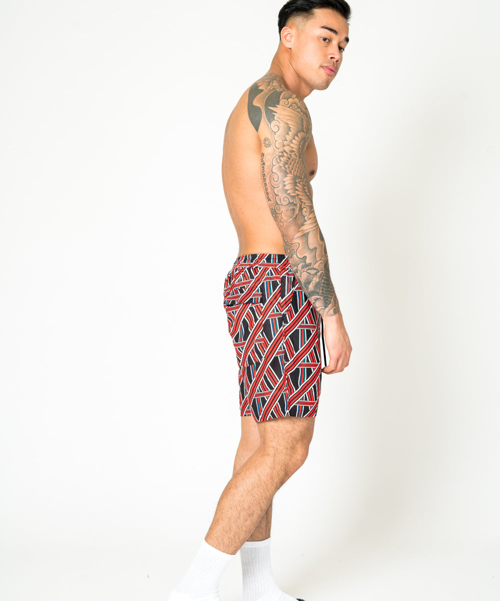 Black Relaxed Red & Black Geometric Shorts