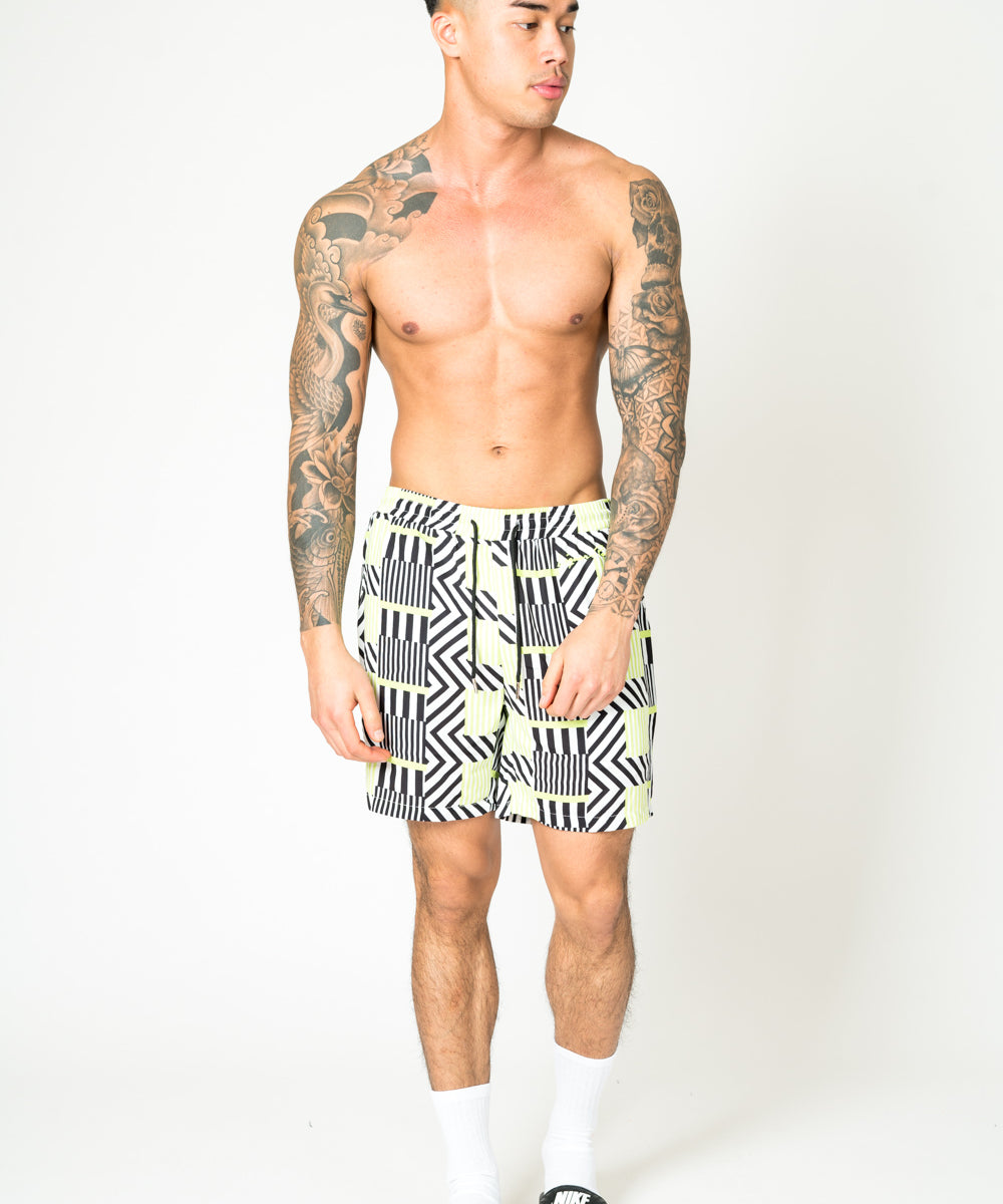Relaxed Fit Shorts In Lime Black With Geo Stripe