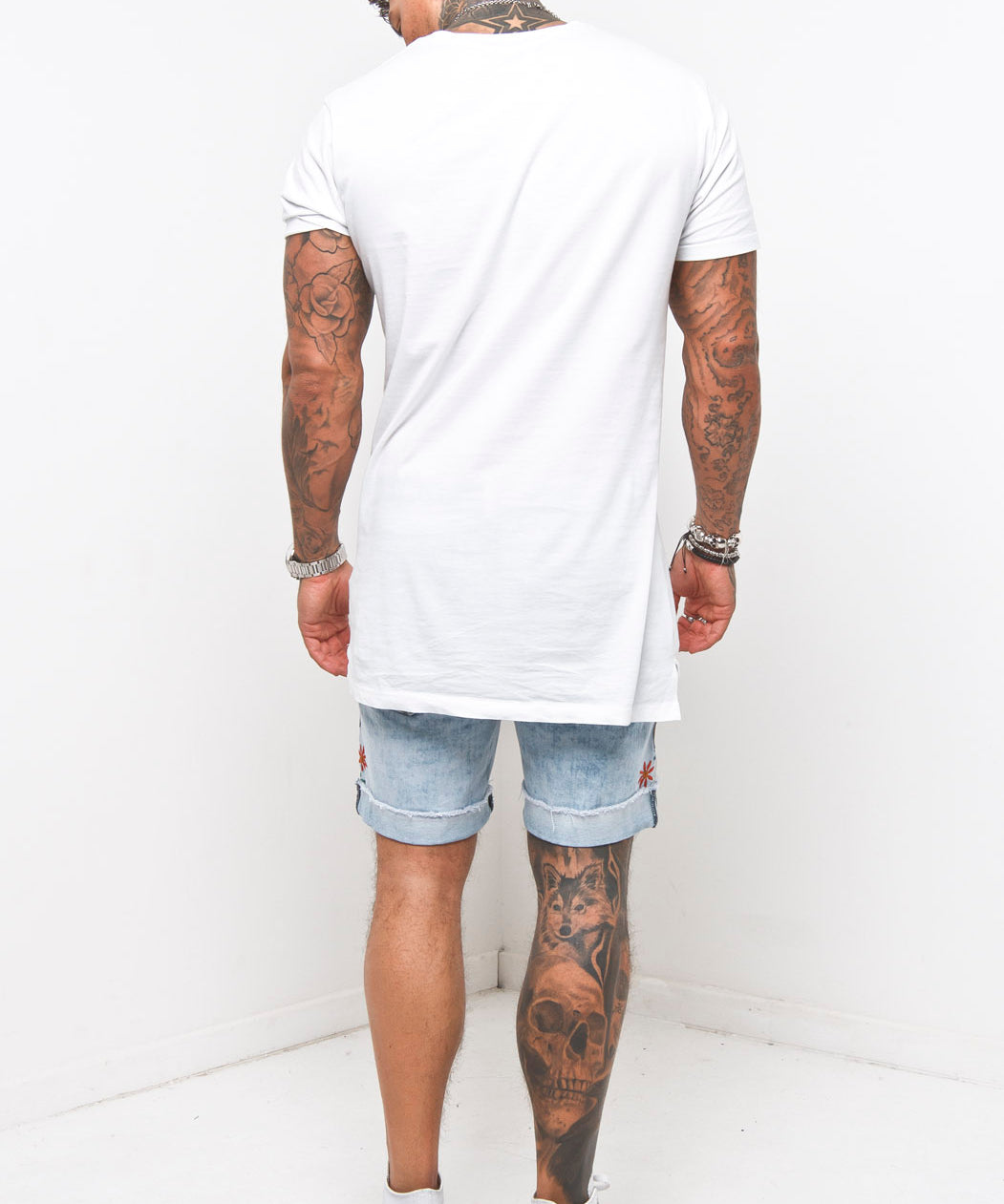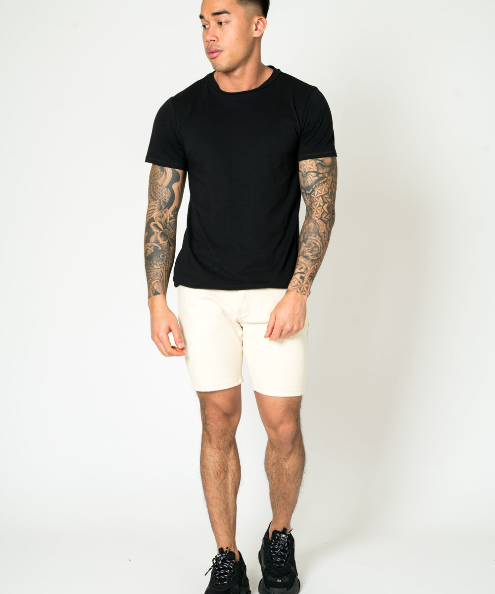 Ecru Slim-Fit Denim Shorts