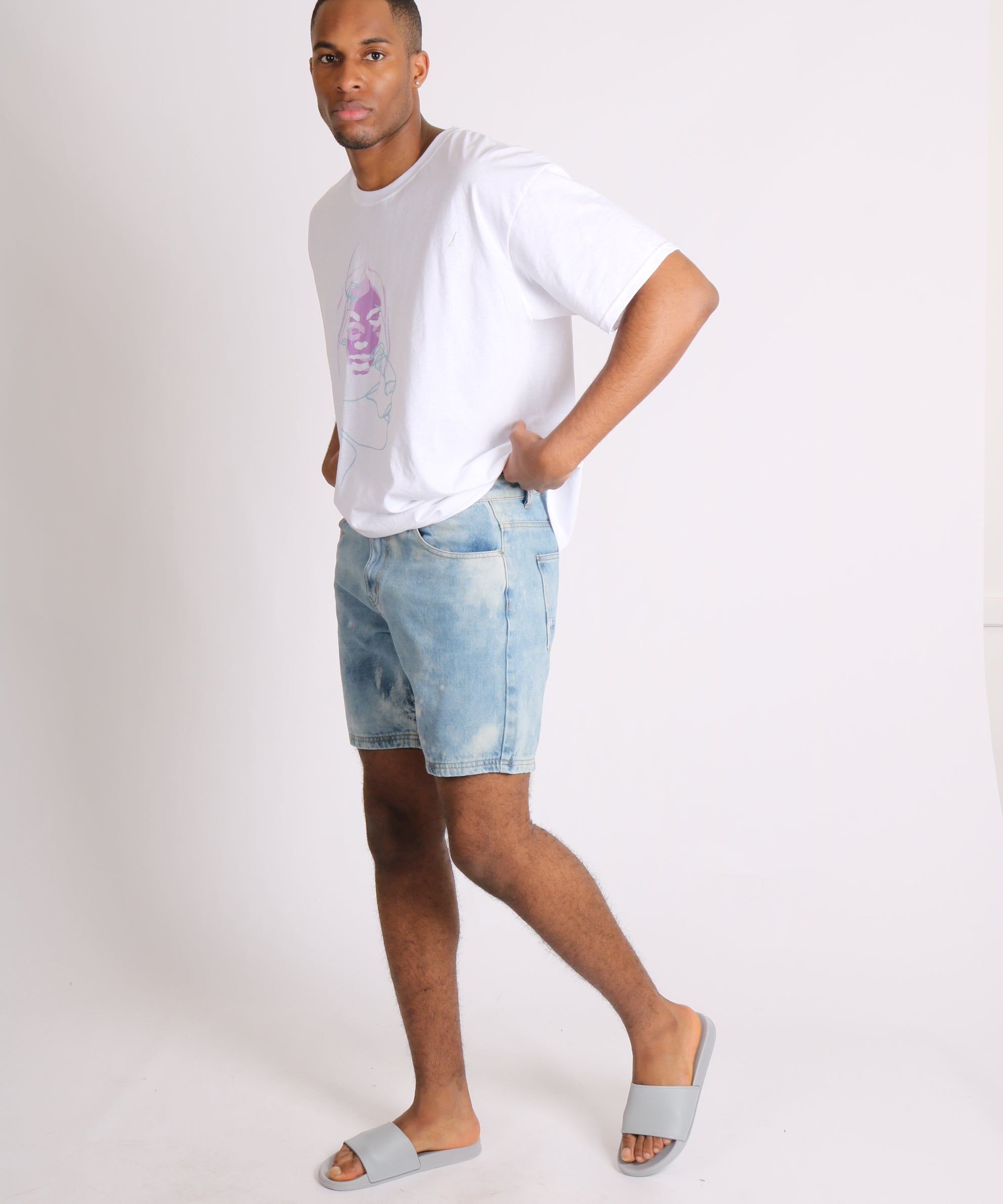 Relaxed Cloud Bleach Wash Denim Shorts