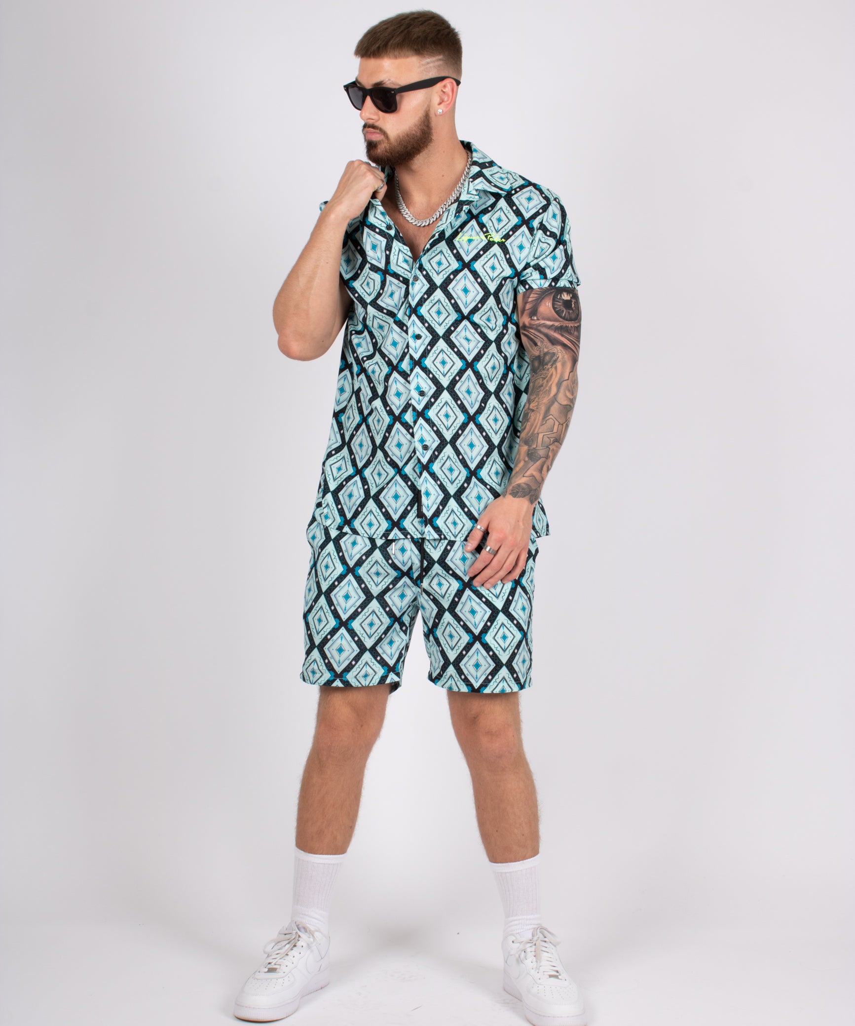 Relaxed Fit Diamond Print Shorts