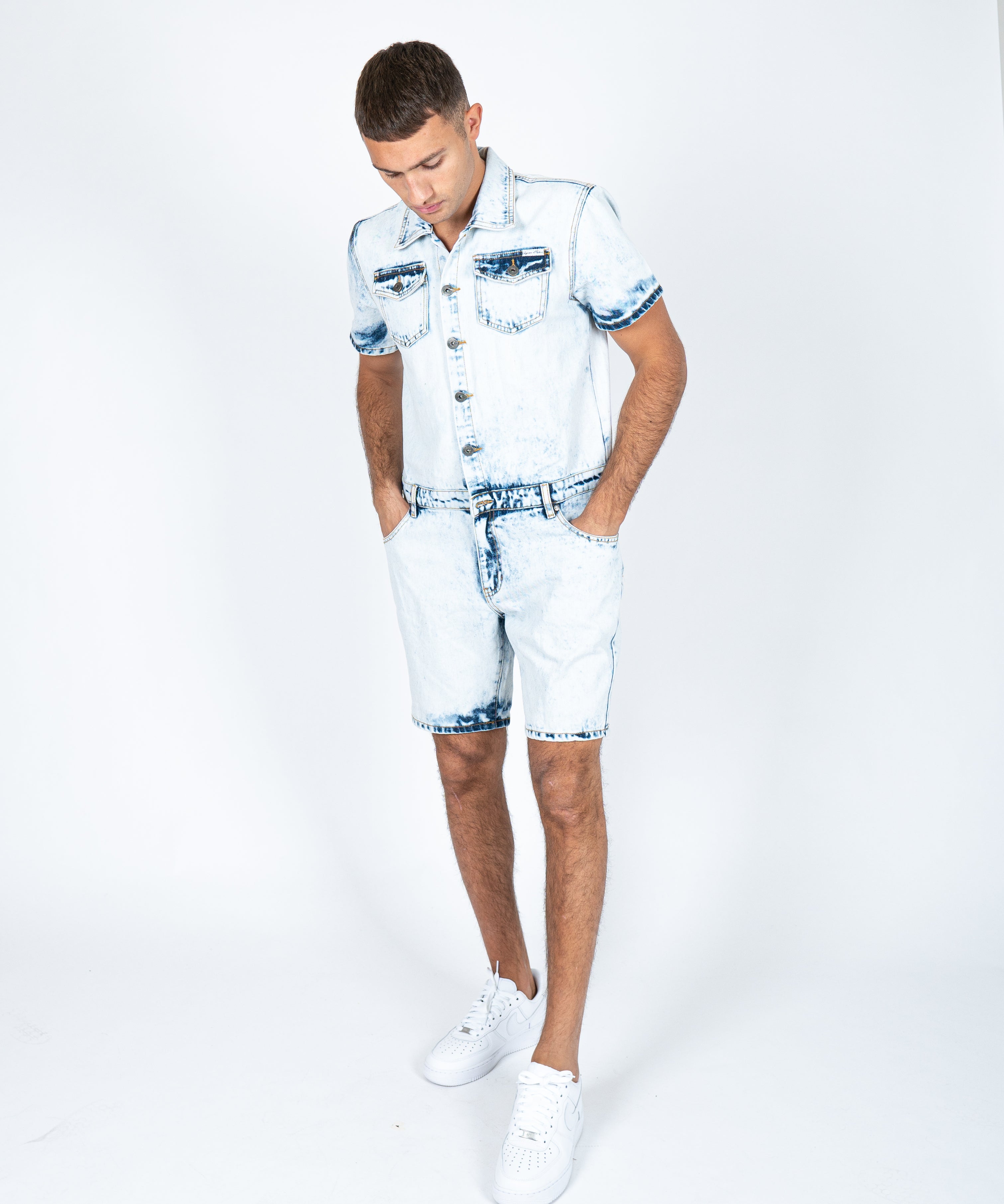 Tennessee Denim Overall Shorts In Cloud Wash