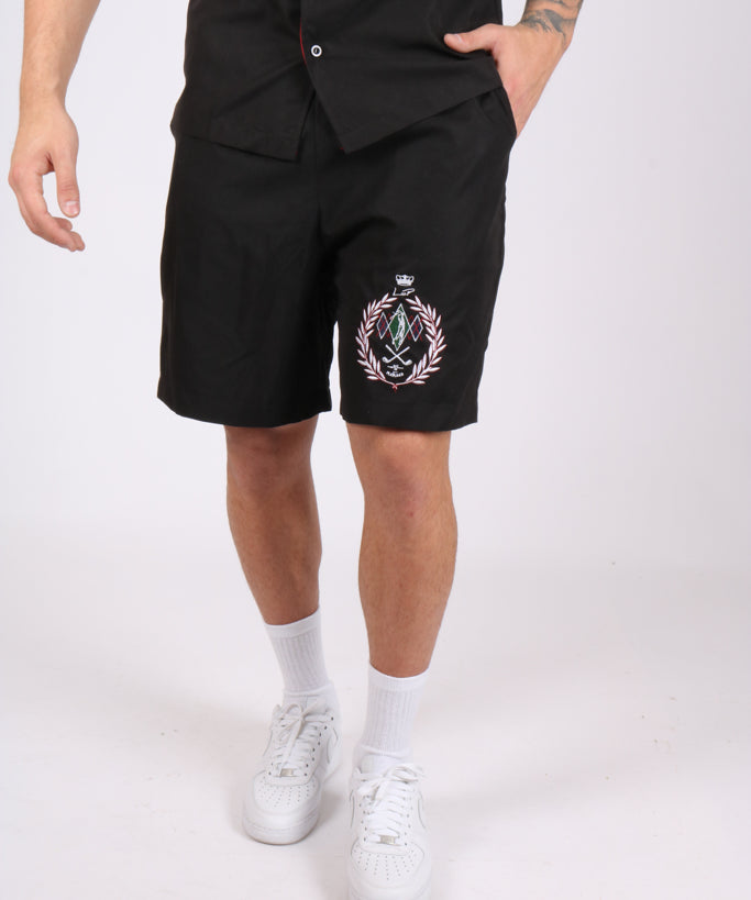 Black Embroidered Golf Club Shorts