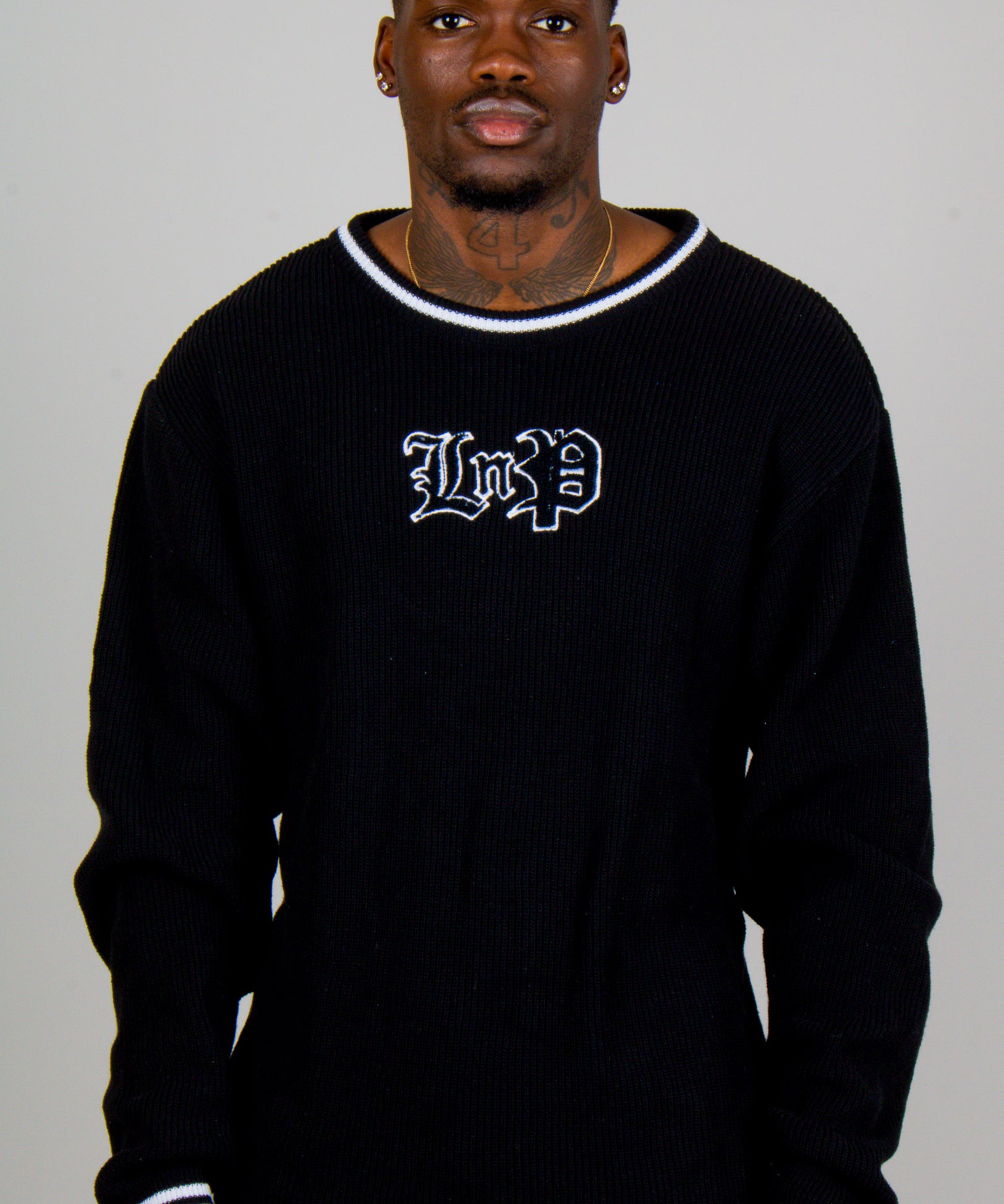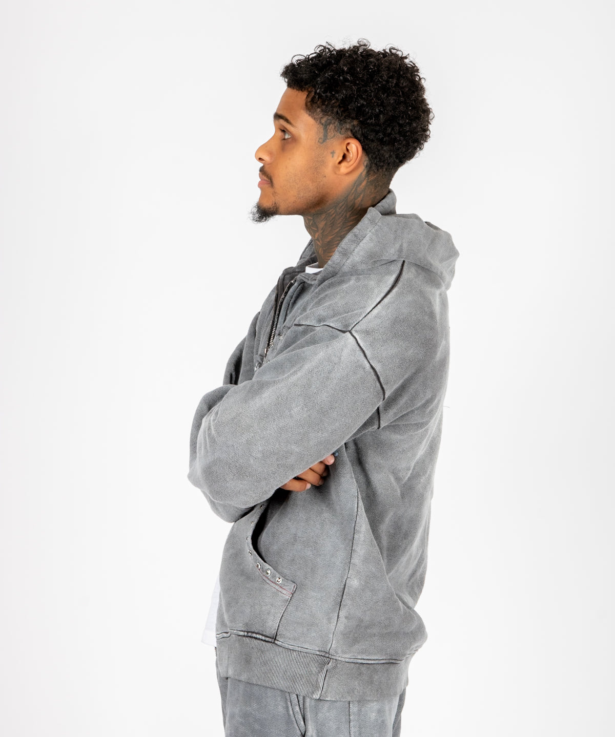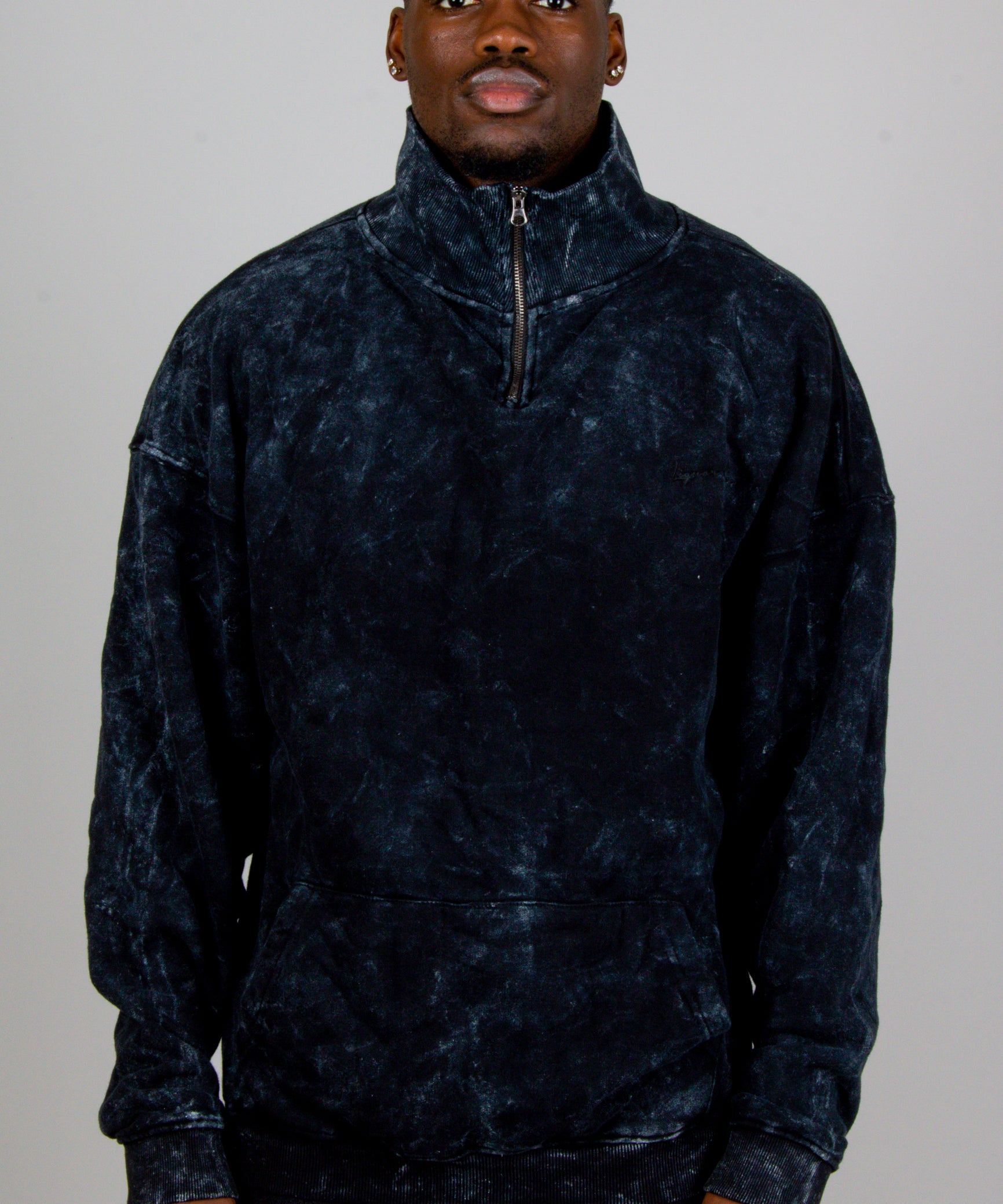 Acid-Wash Black Funnel Neck 3/4 Zip Sweater