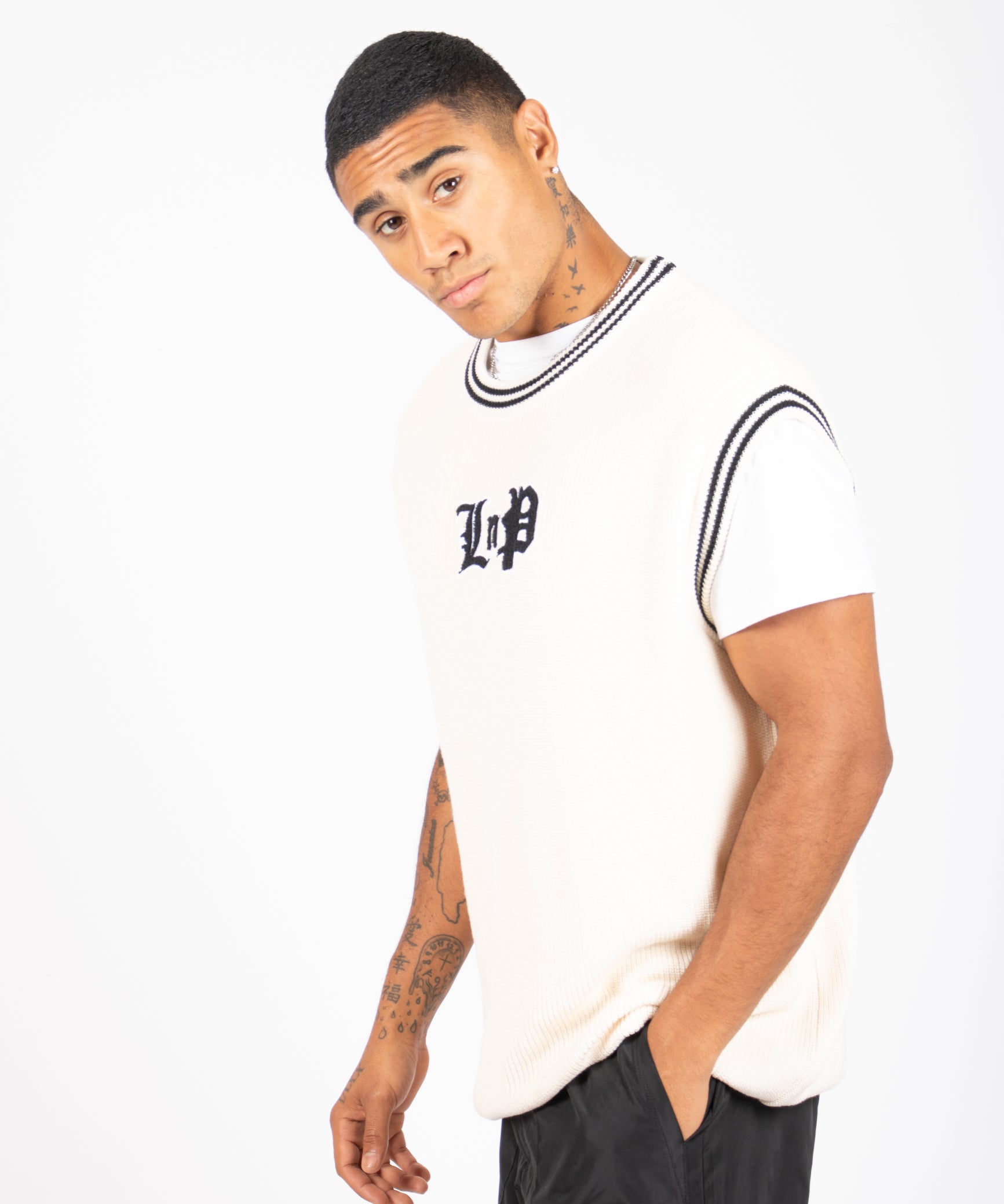 Oversized Cream Varsity Knitted Sleeveless Sweater