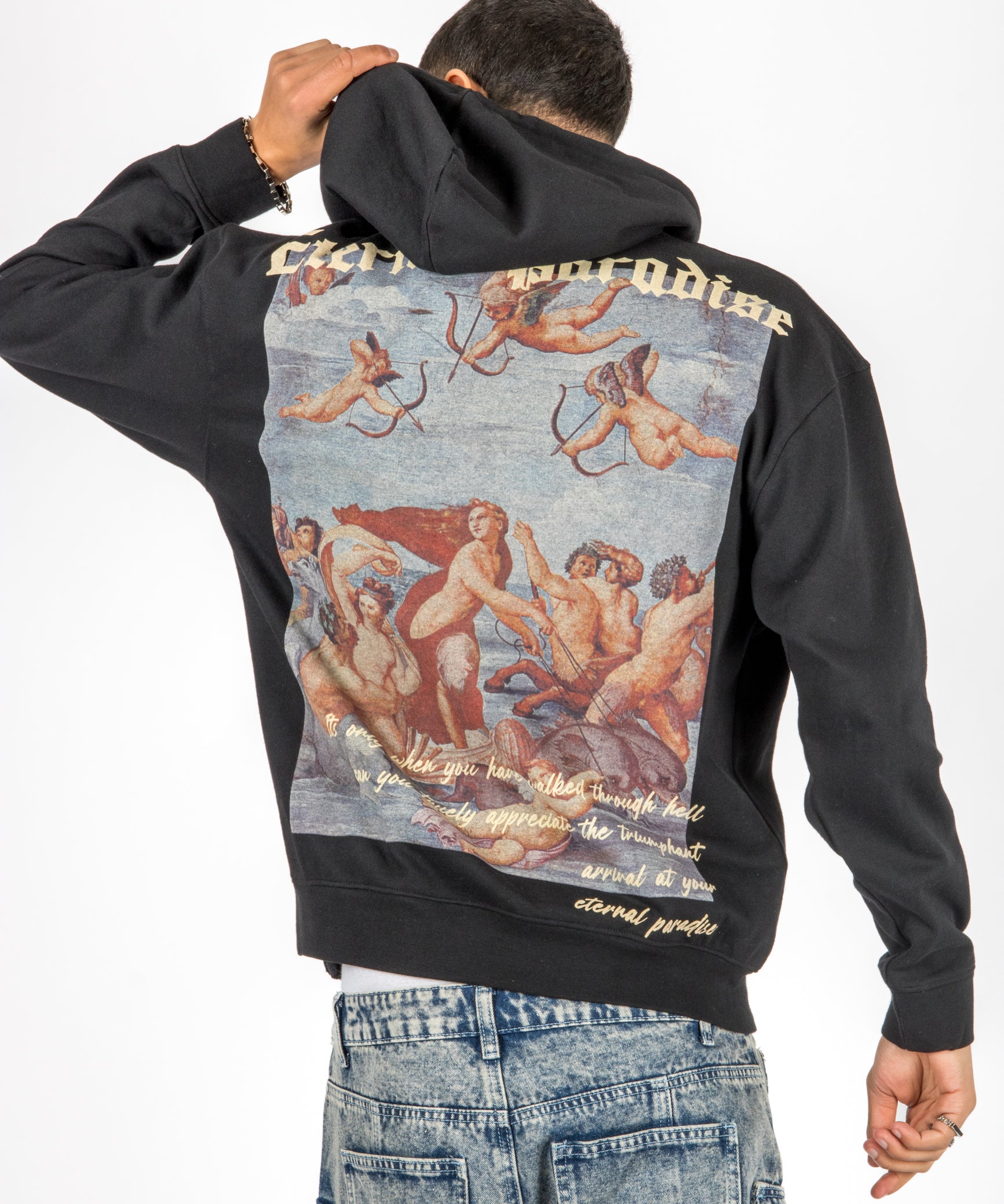 Oversized Black "Eternal Paradise" Back Print Hoodie