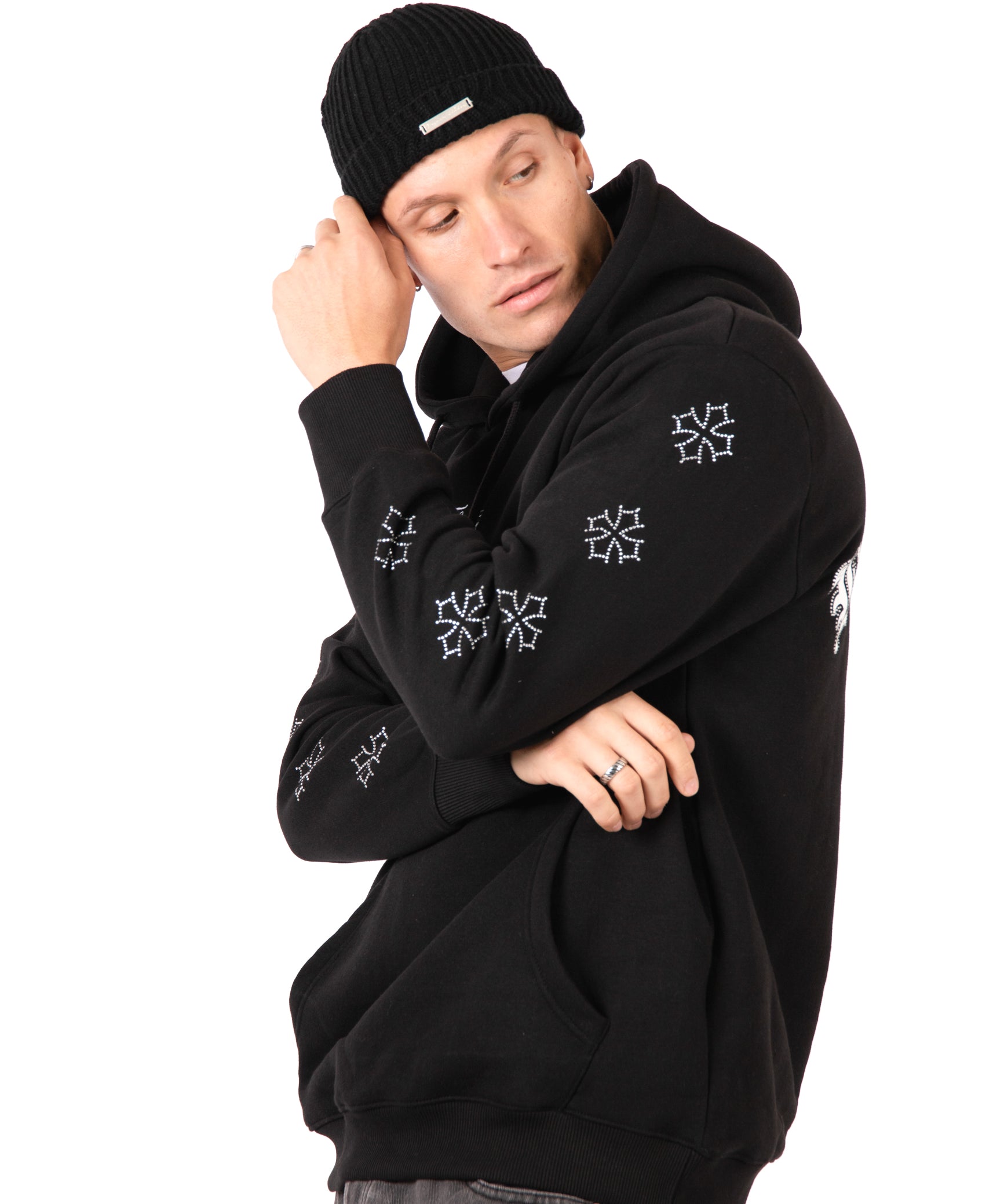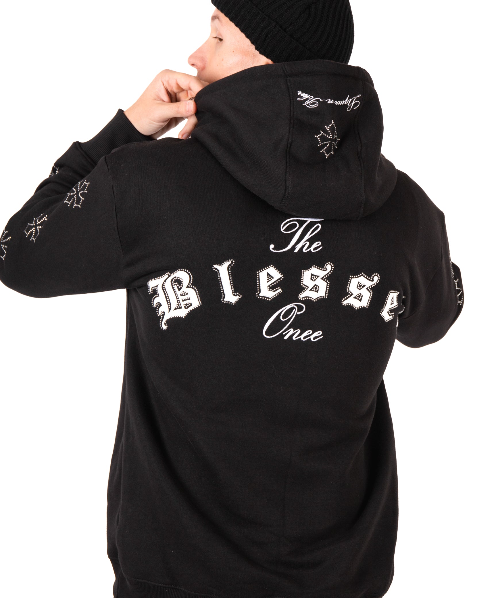 Black Rhinestone Embellished 'Blessed' Motif Hoodie