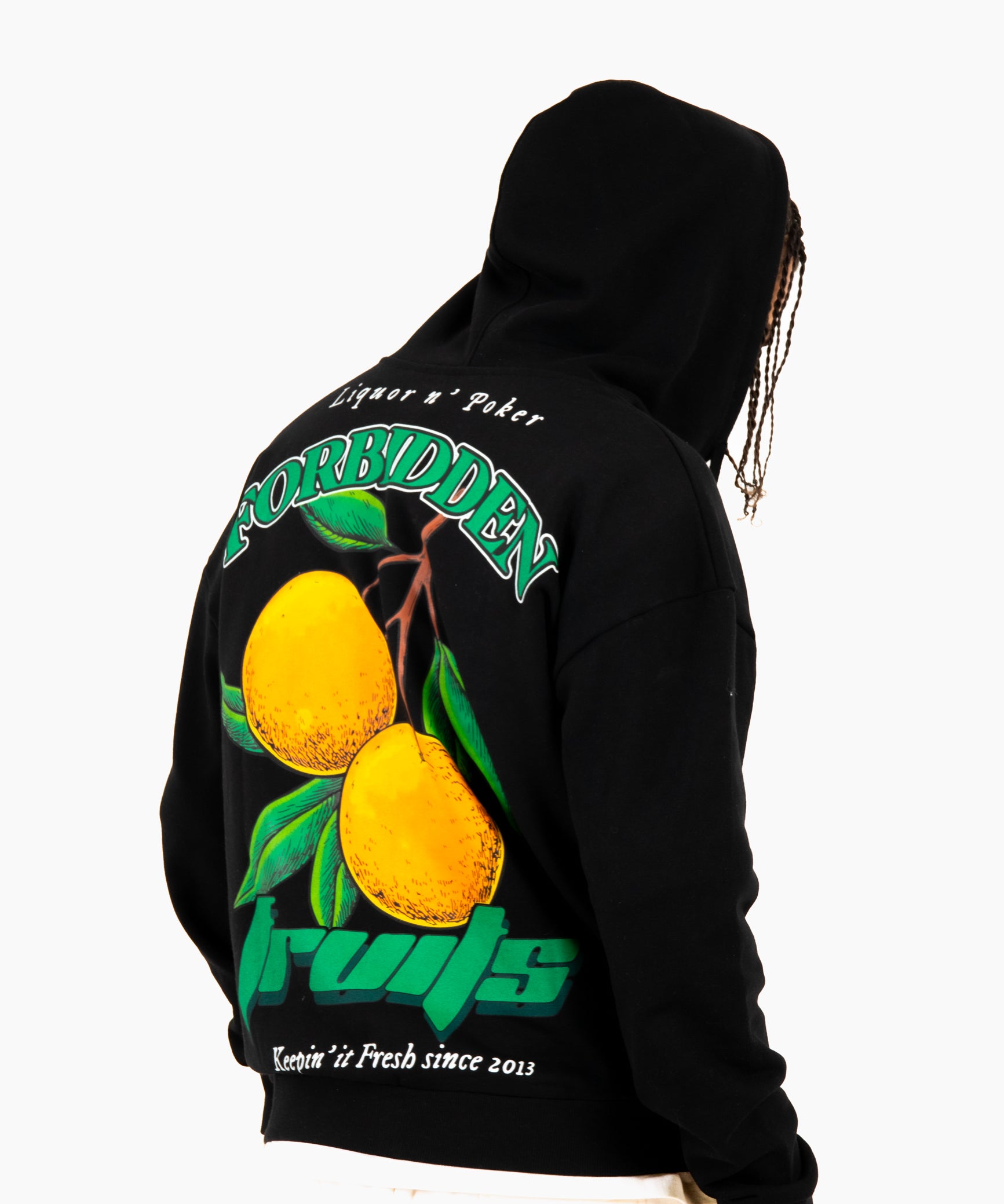 Oversized 'Forbidden Fruits' Back Printed Zip Up Hoodie