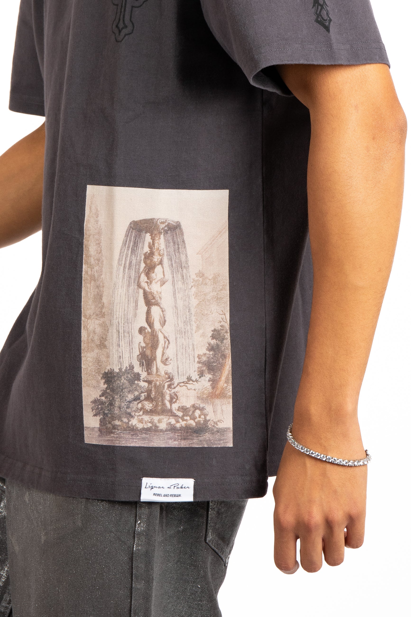 Grey Premium Oversized 'Eternal Paradise' Printed T-Shirt