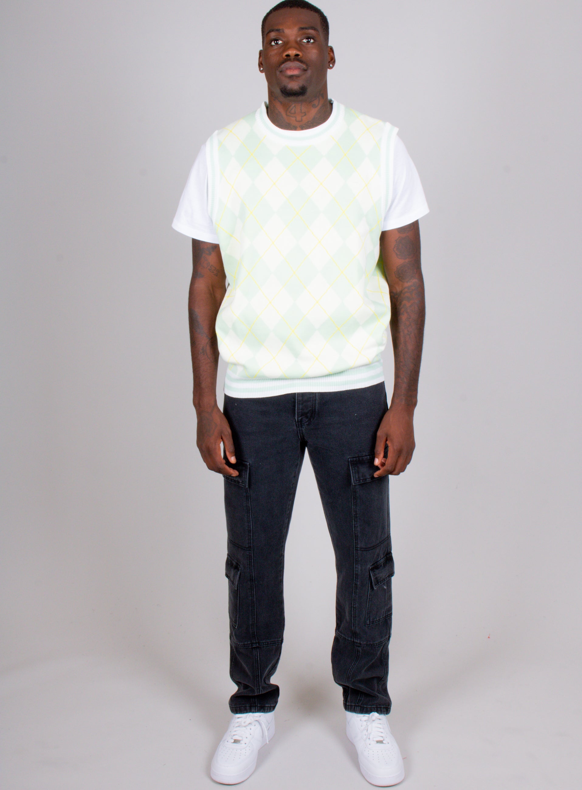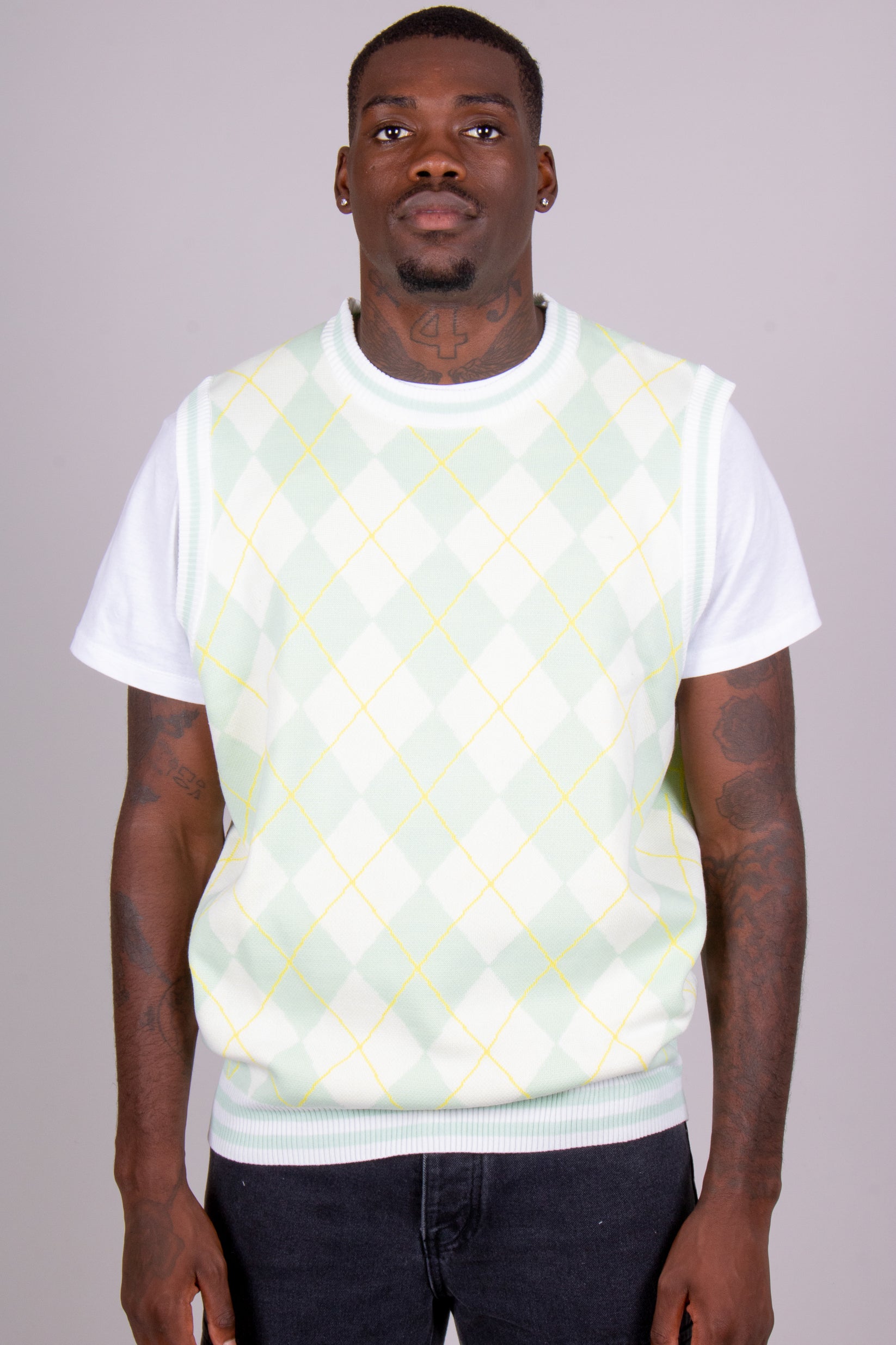 Introducing our Mint Knitted Diamond Sweater Vest, a perfect blend