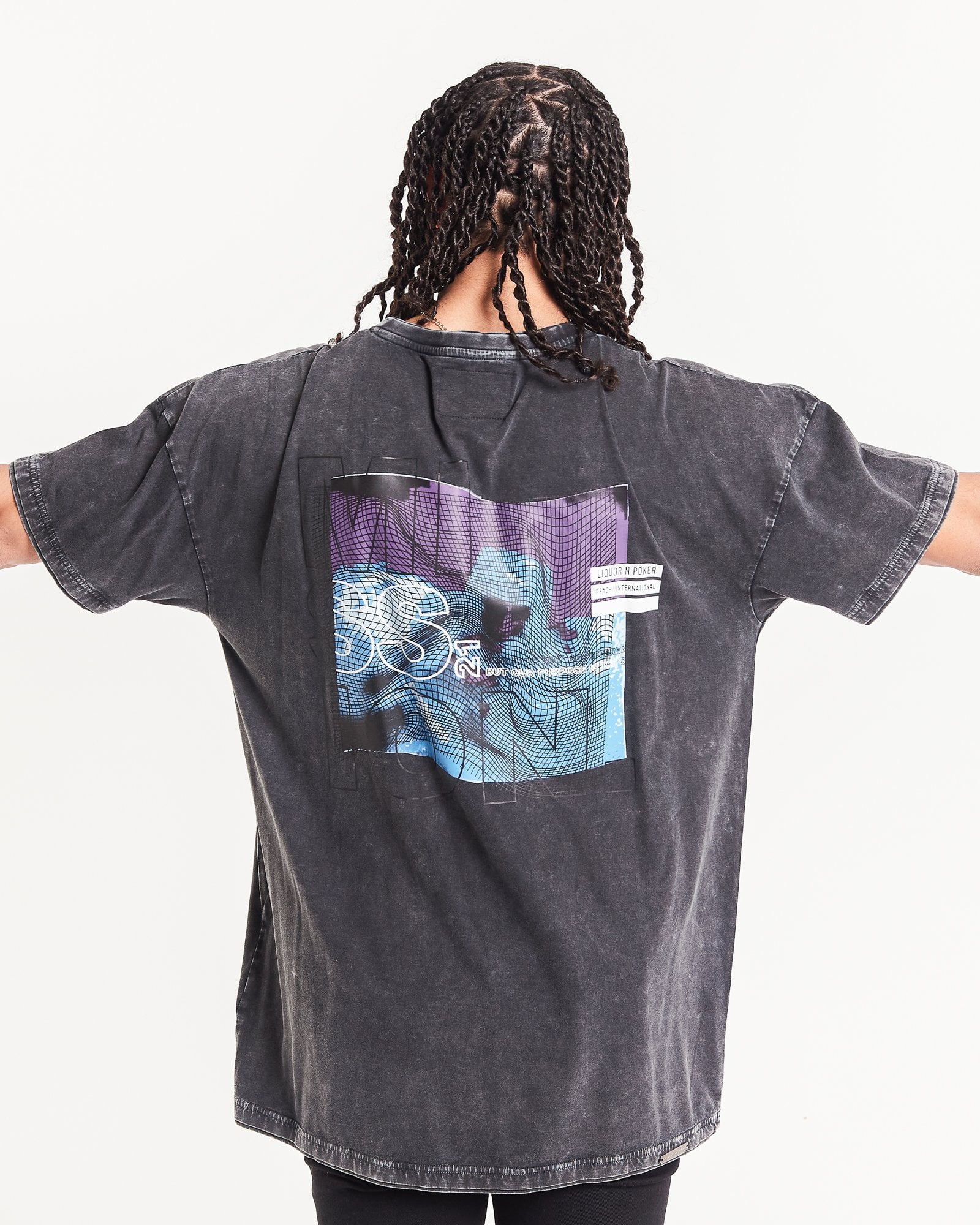 - Oversized washed charcoal printed space mission t-shirt