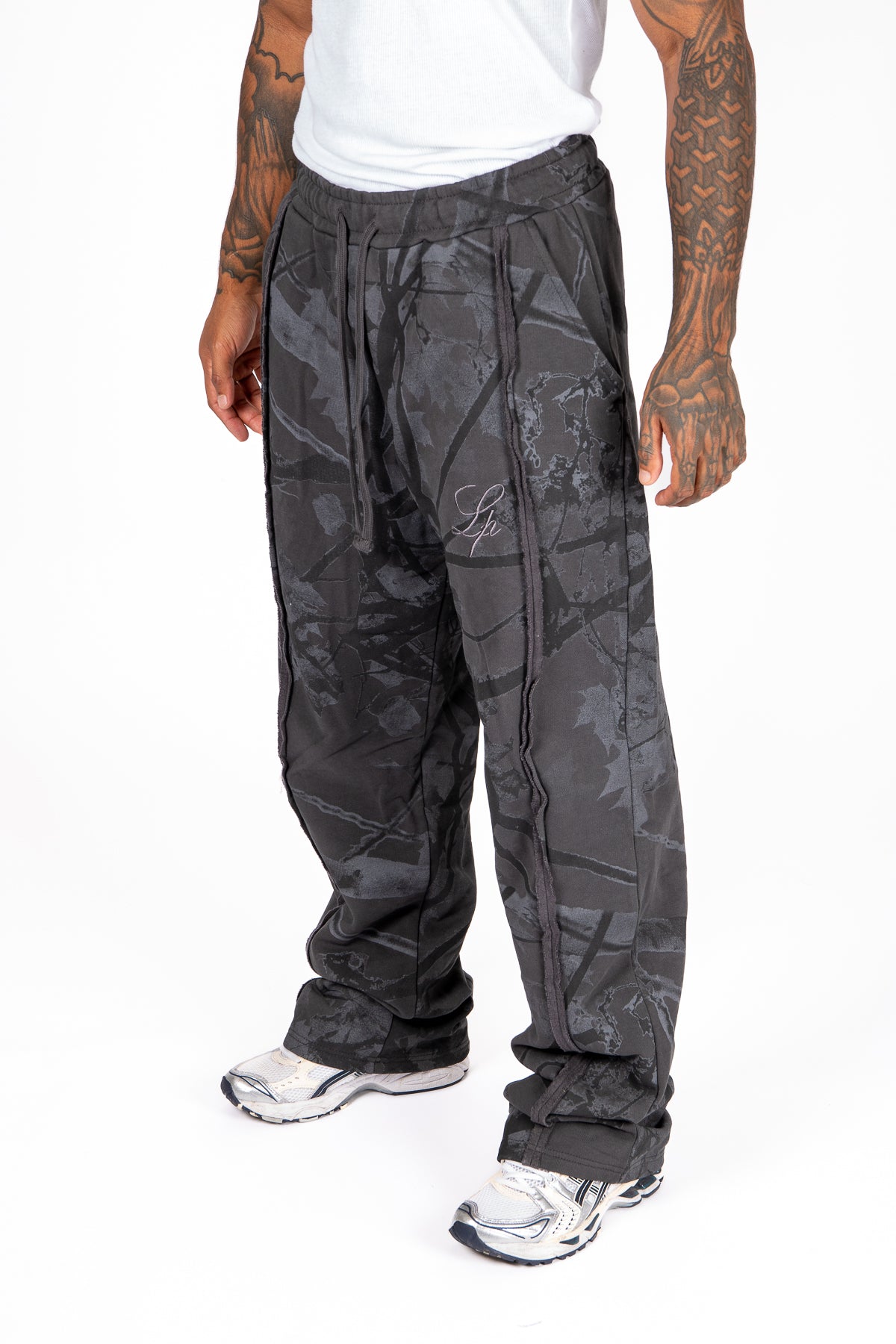 - Straight leg with slight stack at hem