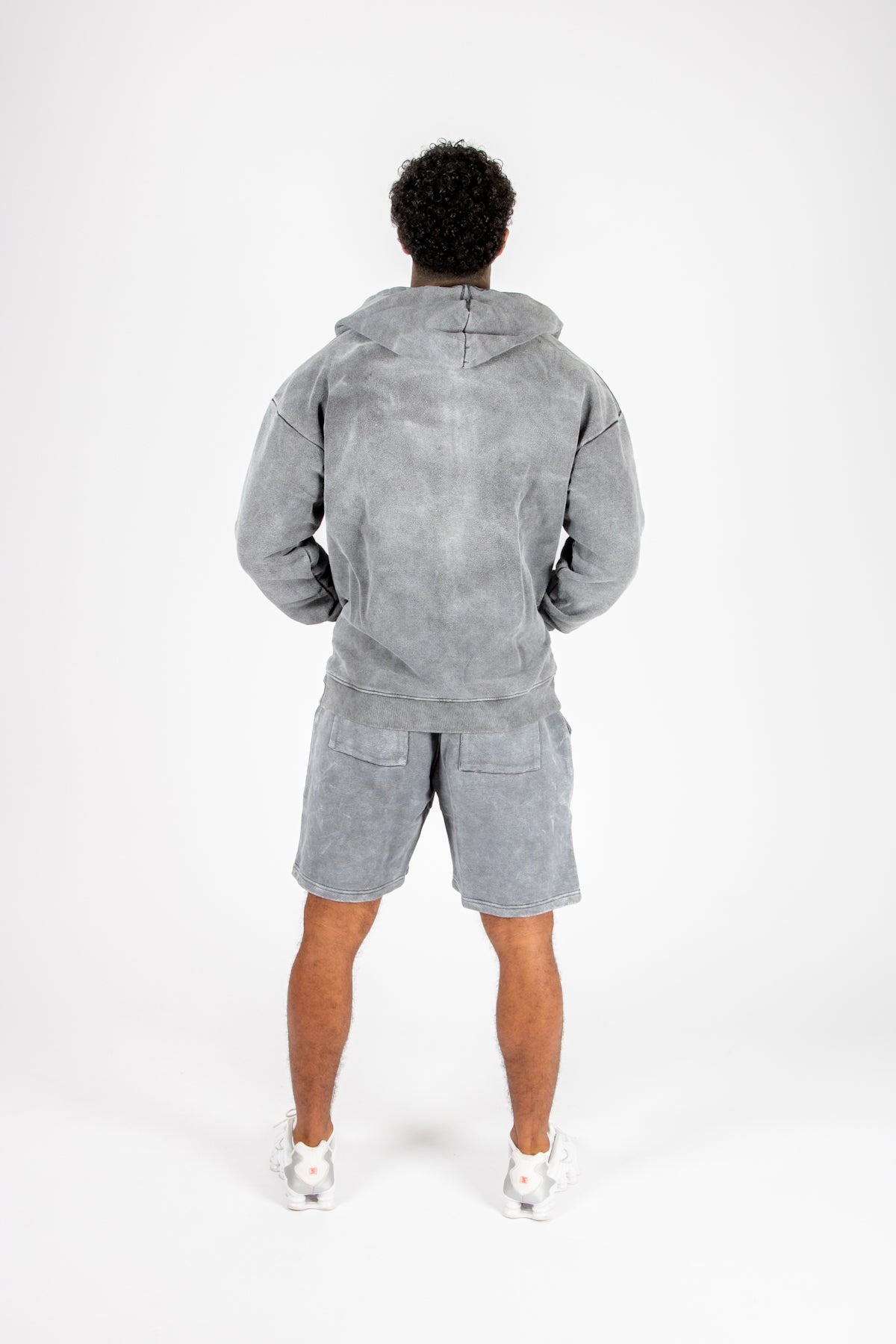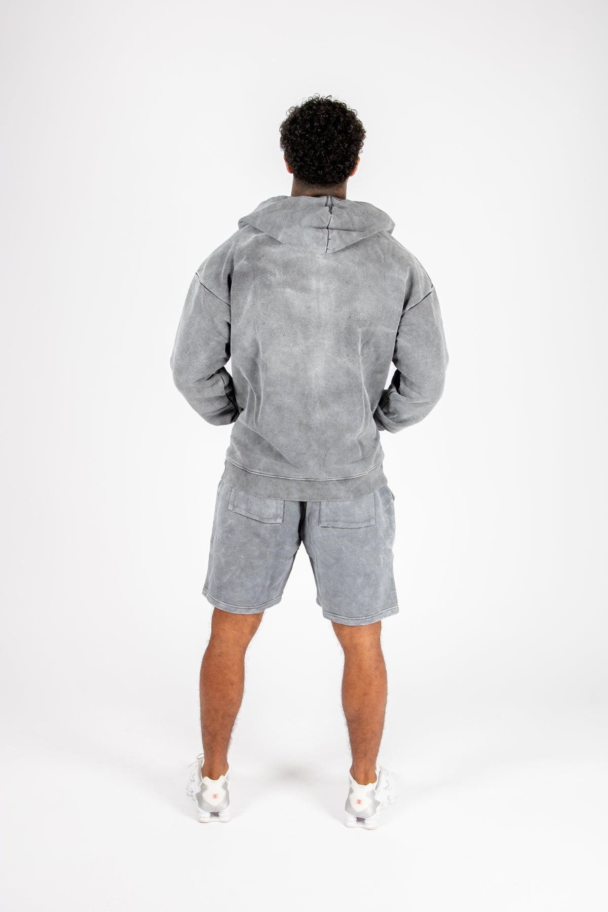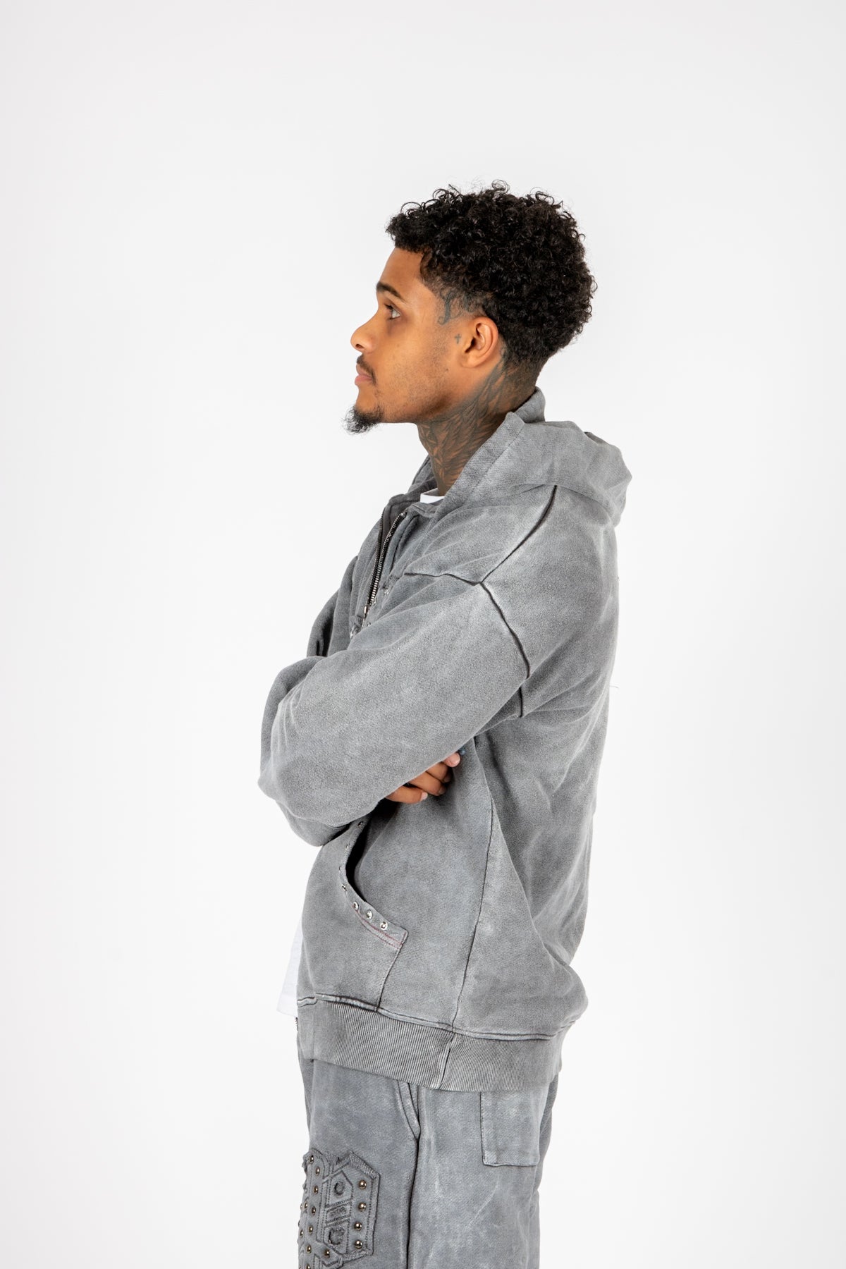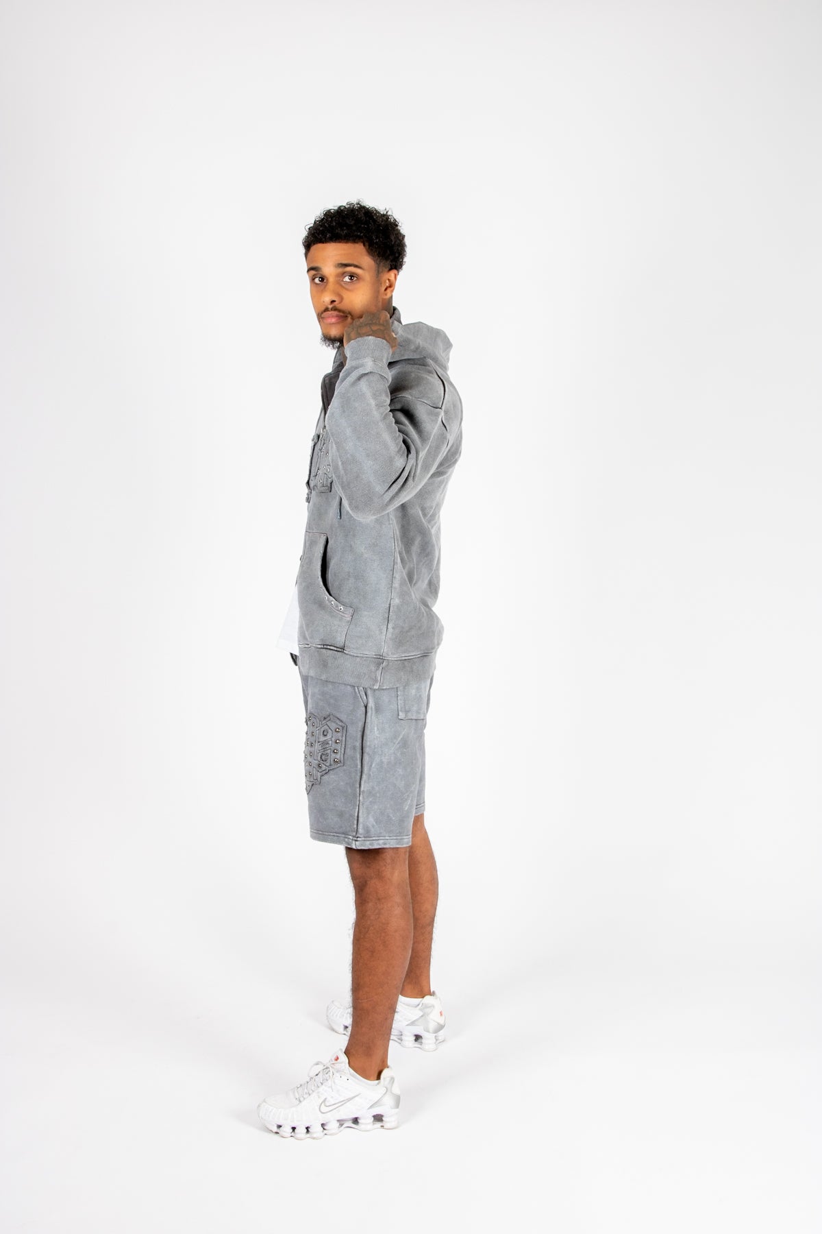 Oversized Washed Grey Appliqué & Stud Detail Hoodie