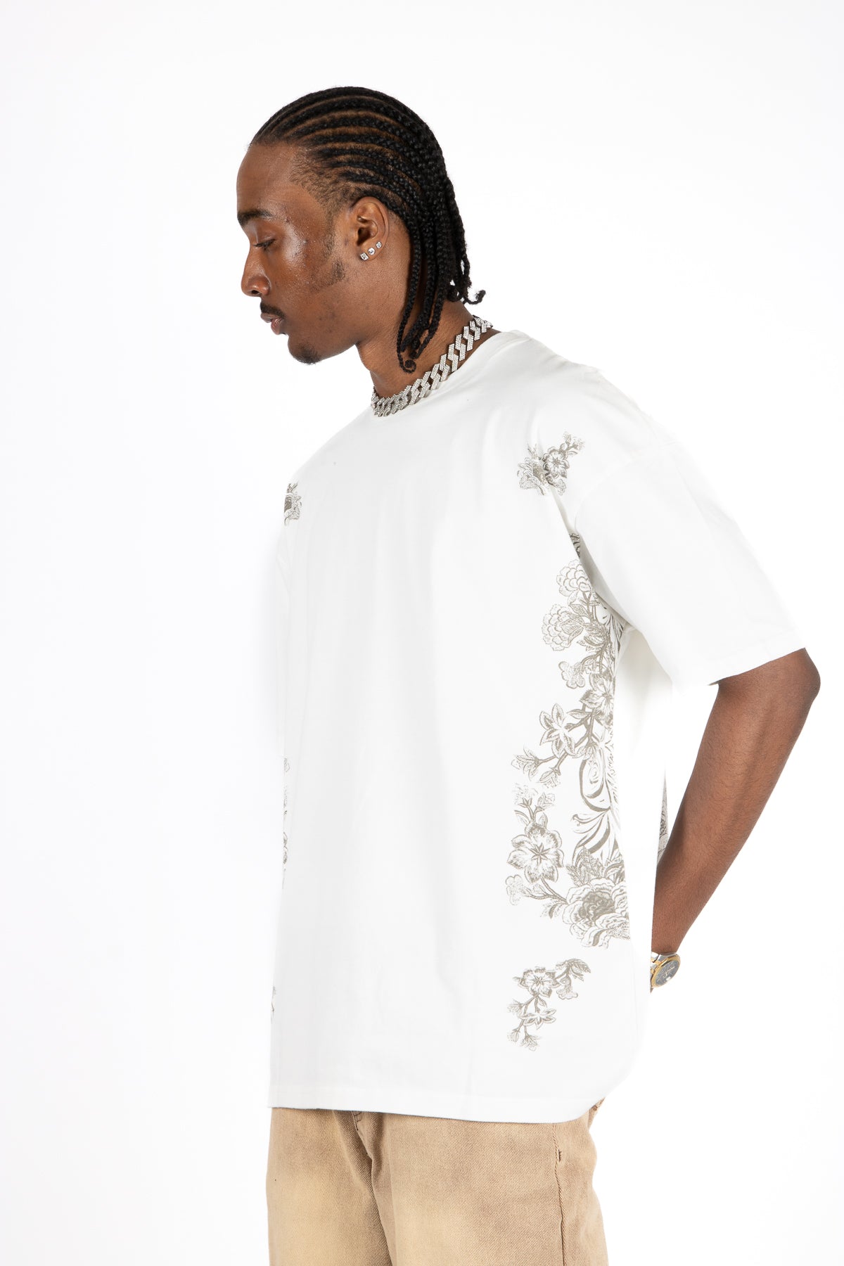 Relaxed Fit Royal Emblem Back Printed Off White T-Shirt