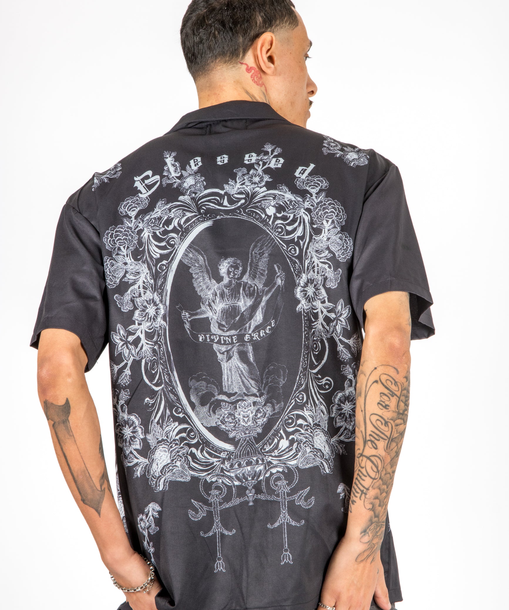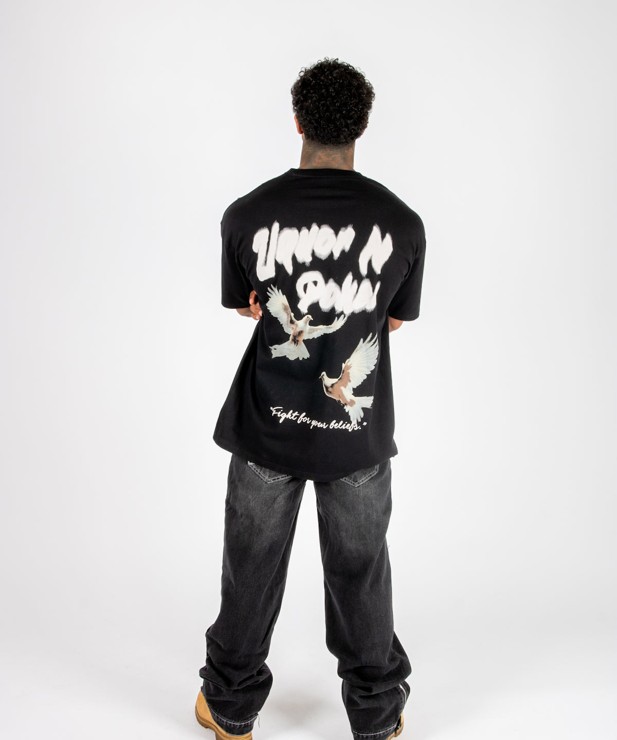 Black Oversized Bird Graphic Back Printed T-Shirt