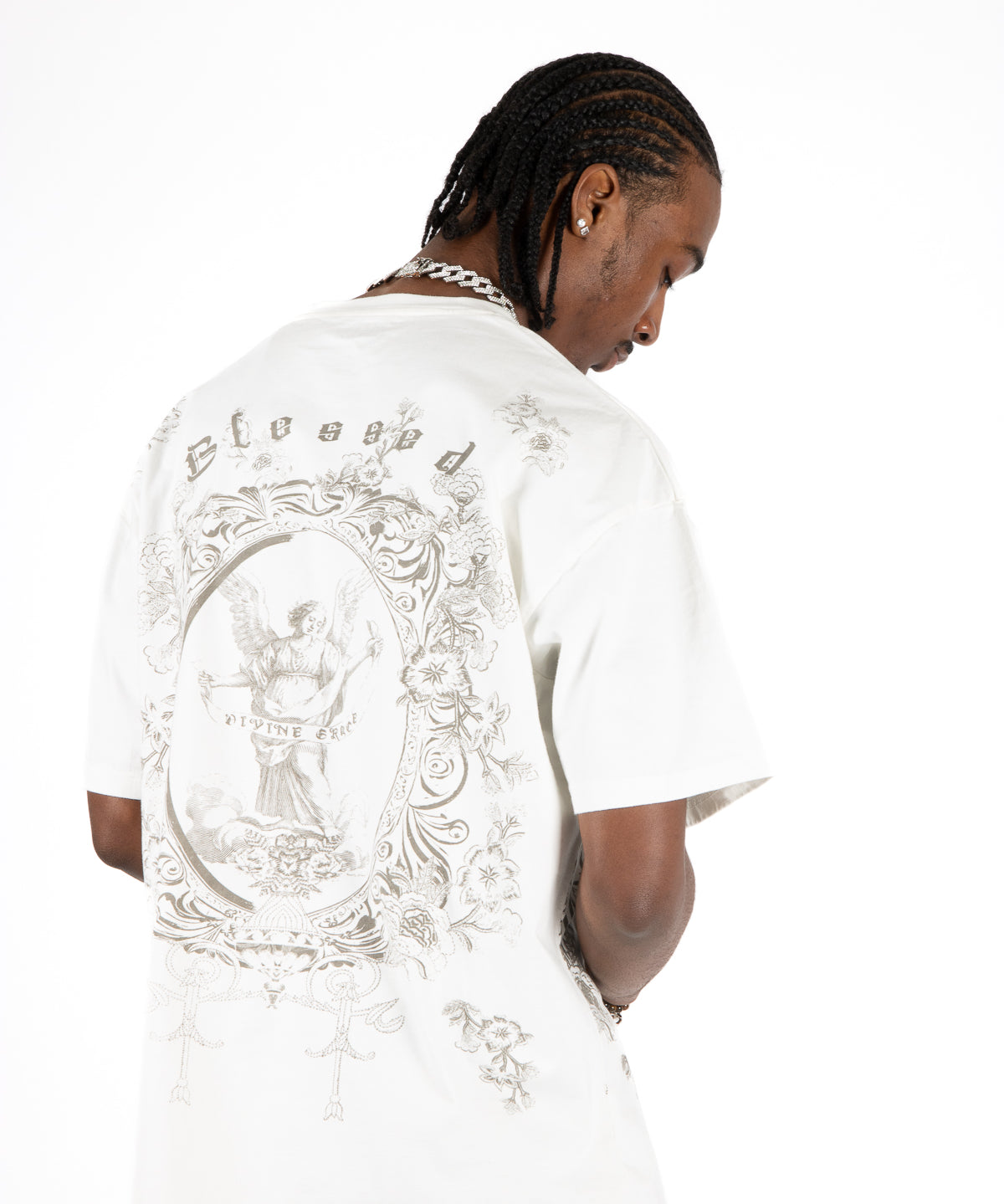 Relaxed Fit Royal Emblem Back Printed Off White T-Shirt