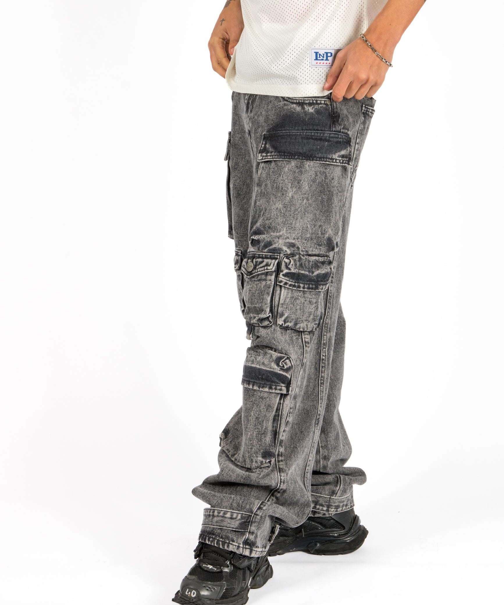 Washed Black Contrast Stitch Barrel Varsity Jeans